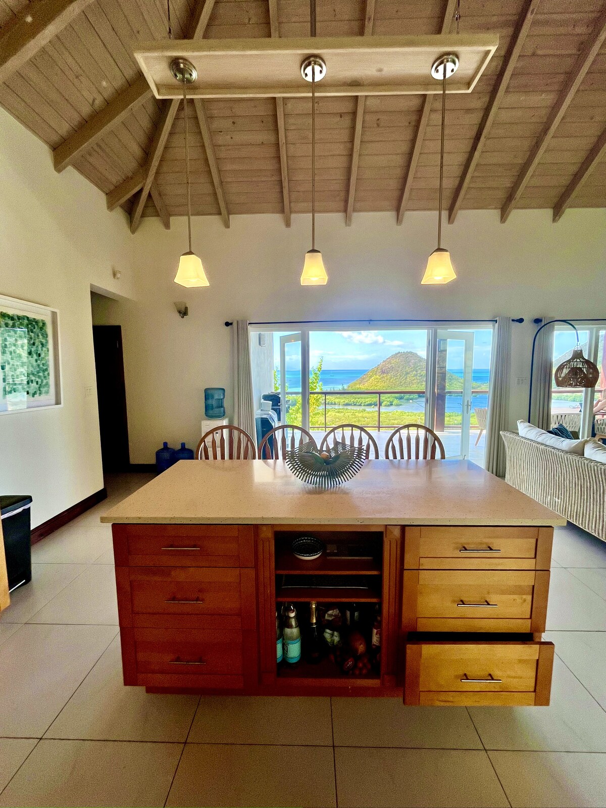 Vila Five Islands Bay Vue je samostojna zasebna namestitev s pogledom na severozahodno obalo Antigve. Udobno lahko sprejme do 6 oseb, je 5 minut vožnje do 3 najlepših plaž Antigve in 10 minut vožnje do glavnega mesta St John's. Na voljo so brisače za plažo, prenosni hladilnik, zložljivi stoli za plažo in senčniki. Najemite naš 4-vratni Jeep Wrangler za 600 USD na teden, vključno s taksijem do letališča in nazaj ter zavarovanjem.