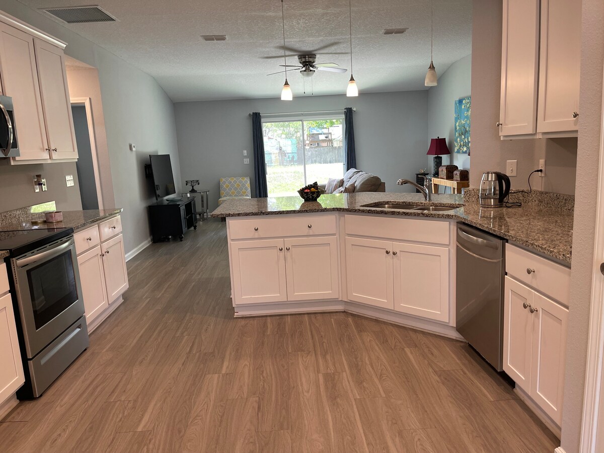 Pridite in se sprostite v hladnih stenah hiše, ki se nahaja v mirni ulici v osrčju mandarinščine. Videli boste 3 prostorne spalnice (glavna spalnica je kraljevska, druge so zakonske velikosti), 2 kopalnici, popolnoma opremljena kuhinja, novo pohištvo. Vse ostalo je opremljeno s bivališčem v bližini kamina, kjer se lahko zberete. Čista in nova hiša z opremo. Jacksonville Beach v 25 minutah. Dovoljena sta bila 2 hišna ljubljenčka. Za hišne ljubljenčke zaračunamo doplačilo v višini 100 $.