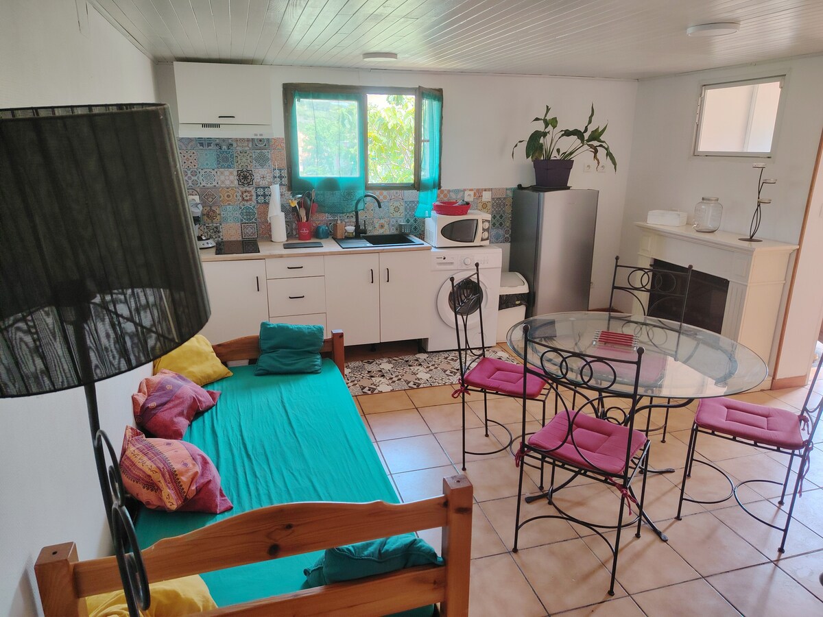 Lepa prenovljena garsonjera z omrežjem Wi-Fi, svetla s pogledom na reko in gore, opremljena in funkcionalna. Prava postelja 140. Bližnje restavracije, bari in živila. Idealno za sprostitev in obisk znamenitosti katarske dežele. Vroče vode v naravi poleg prenočišča. Rjuhe in brisače niso na voljo. Prihod po vaši izbiri: fizična dobrodošlica ali škatla za ključe (če želite ali pozen prihod) Možnost 4 oseb z oddajanjem sosednjega studia Les Charmes de Rennes les bains, če je brezplačen.