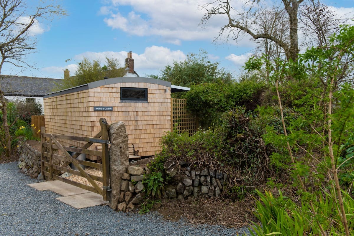 Skrito v mirnem kotu zemljišča lastnikov, Hope 's Cabin, osupljivo zatočišče, kamor se lahko vrnete na koncu dneva ob raziskovanju polotoka Kuščar v Cornwallu. Namočite se v čudoviti bakreni kopalni kadi ali pa se sprostite pred gorilnikom. Uživajte v večerji »al fresco« na verandi ali pa se zavijete v preprogo, ko se temperatura zniža. Ljubitelji sonca bodo večino dneva cenili sonce. Dobro opremljena kuhinja, ki je pametno izbrana za maksimiranje prostora. Zakonska postelja, notranja stranišče in zunanja prha.