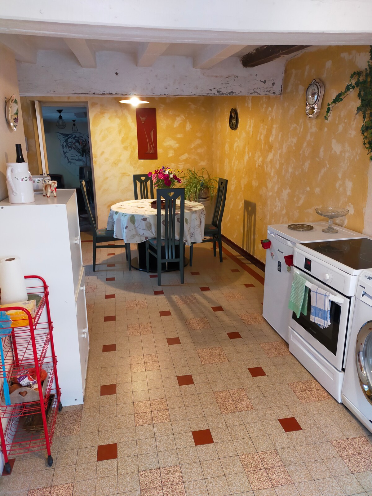 Logement unique et proche de tous commerces, dans beau village touristique des Alpes Mancelles. Cuisine équipée et salle d'eau avec douche au rez de chaussée. A l'étage grande pièce avec espace couchage pour 4 personnes. Espace salon dans cette même pièce avec TV et accès sur jolie terrasse. Notre maison n'est pas équipée d'accès à internet, profitez de la nature !