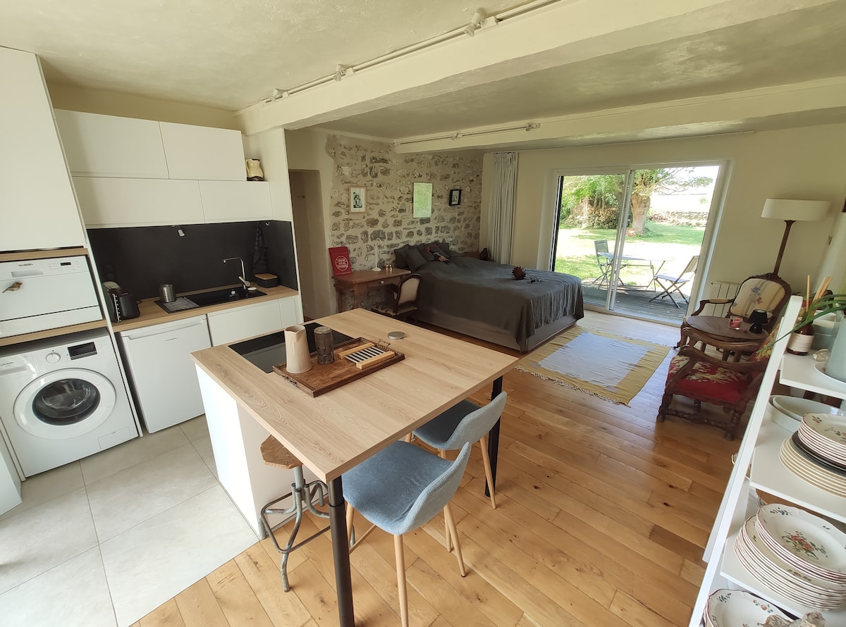 Pridite in bivajte v tem čudovitem studiu, ki prečka 2 koraka od morja, v osrčju dveh rt! 150 metrov od plaže v stari kmečki hiši boste imeli udobno bivanje v zelenem okolju. Gostje lahko uživajo v vrtovih na vzhodni strani na dvorišču in zahodni strani na poljih. Udoben in svetel ta majhen košček raja je idealen za druženje v miru, blizu plaže in hojo ali kolesarjenje. Popolno prenočišče, da sprostite svojo ustvarjalnost.