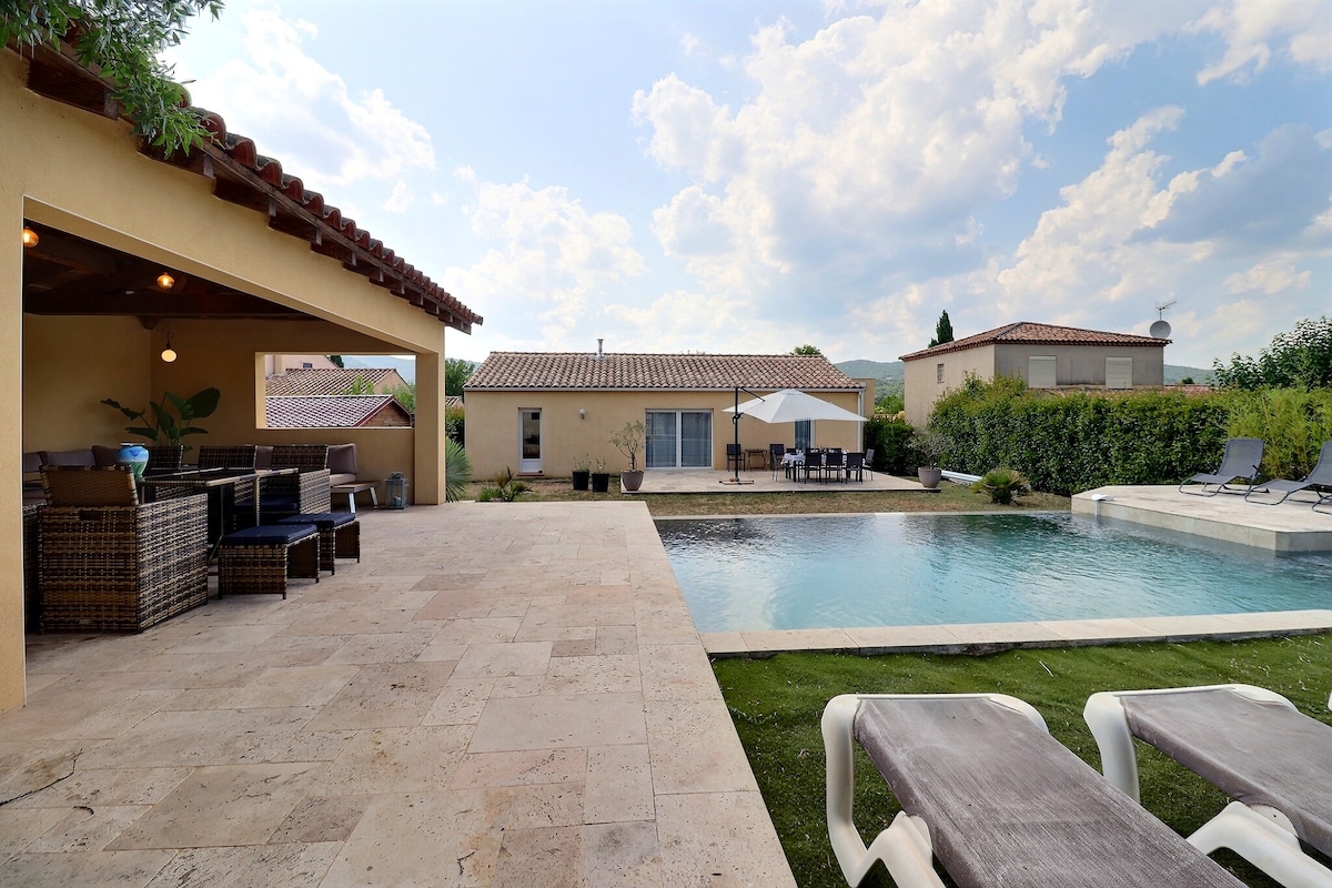 Au calme dans la garrigue, au sein d'un groupement de maisons à l'extérieur d'un hameau, grande maison de famille, 250 m2 + piscine hors sol avec terrasse bois. Capacité de couchage: 12 personnes. A louer toute l'année pour 2 nuits minimum et à la semaine, du samedi au samedi de juillet à fin août. (La piscine ne fonctionne qu'aux beaux jours) Tarifs et disponibilité suivant période, nous consulter.
