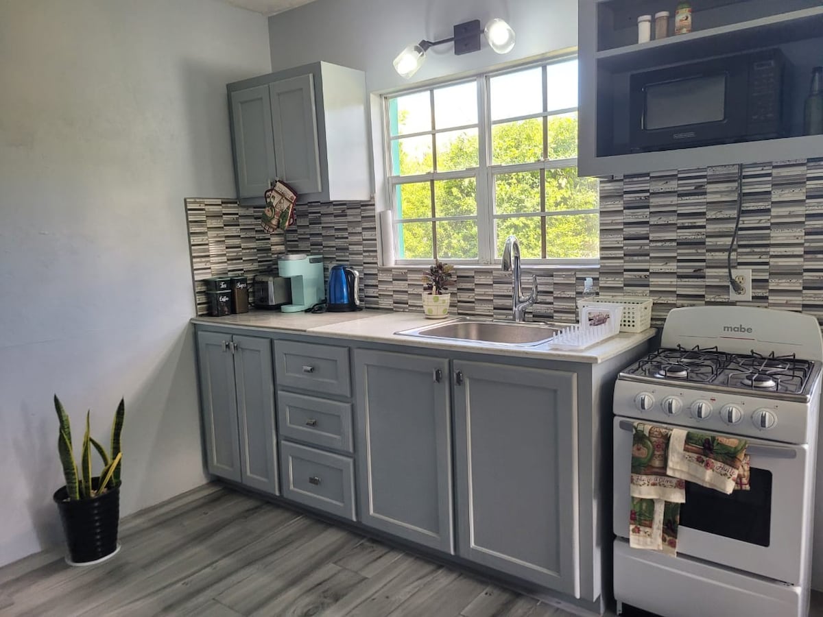 Potopite se v naravne lepote lokalne karibske vasi, le 1-2 minuti hoje od plaže Crabbe Hill, ene najboljših plaž v Antigvi. Zasebna dvojna vrata vas popeljejo v studio odprtega tipa v spodnjem nadstropju s popolnoma opremljeno kuhinjo, zakonsko posteljo, prho in klimatsko napravo. Uživajte v kozarcu vina in sončnem zahodu s terase z dnevno posteljo in žarom. Vključeni so tudi ležalniki in senčniki za plažo v prenočiščih Crabbe Hill Beach Rentals. Idealno za ustvarjalni oddih, samostojne popotnike ali romantični oddih.