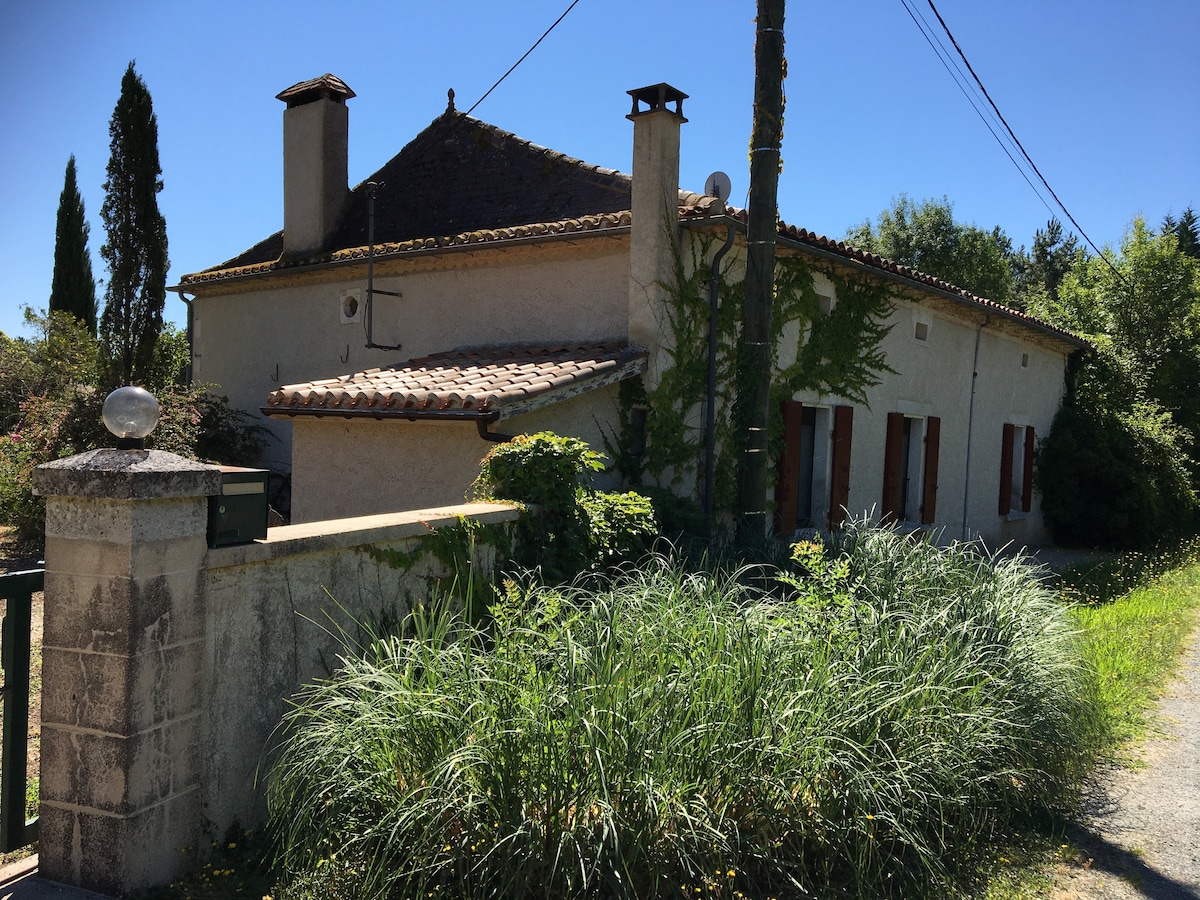 Zelo očarljiva hiška na deželi 120 m2, ki se nahaja v Périgordu, med Bergeracom in perigueuxom. Gostje se lahko sprostijo ob bazenu na robu bazena s čudovitim razgledom in mirnim predelom. - Nastanitev - Kuhinjska stran boste našli vse osnovne potrebščine 2 spalnici 1 kopalnica s prho in WC-jem Televizijski prostor A veranda z namiznimi stoli ... Bralni kotiček - EXTERIOR- Zasebno parkirišče Kamniti vrtno pohištvo Žar Plavalni bazen podjetje v bližini prenočišča