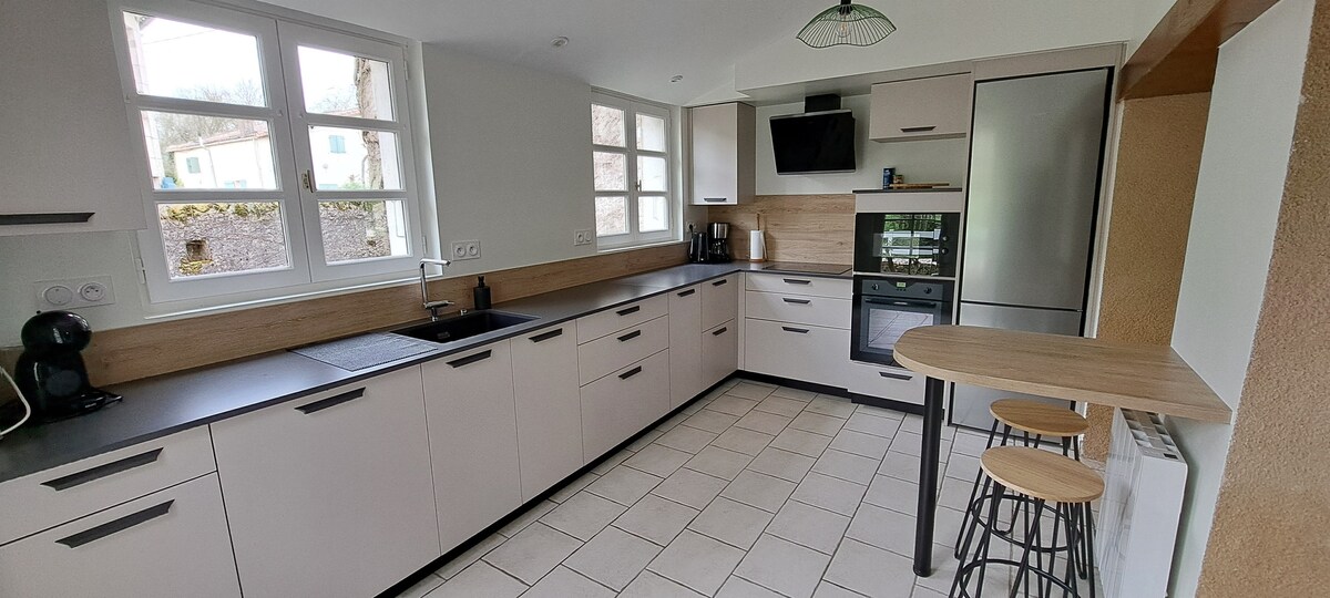 Maison pleine de charme, de 95 m², à la décoration soignée. La maison a été rénovée en 2019 , elle comprend 3 chambres disposant chacune d'un lit double de 140 cm. Une pièce salon cuisine de 42 m², d une lingerie de 15 m². Le salon donne accès à une grande terrasse végétalisée de 50 m². L'ensemble sur un terrain arboré de 800 m² La maison est située au calme d'une impasse , proximité immédiate des commerces (supérette, boucherie, boulangerie,restaurant) et seulement 20mn du Puy du Fou.