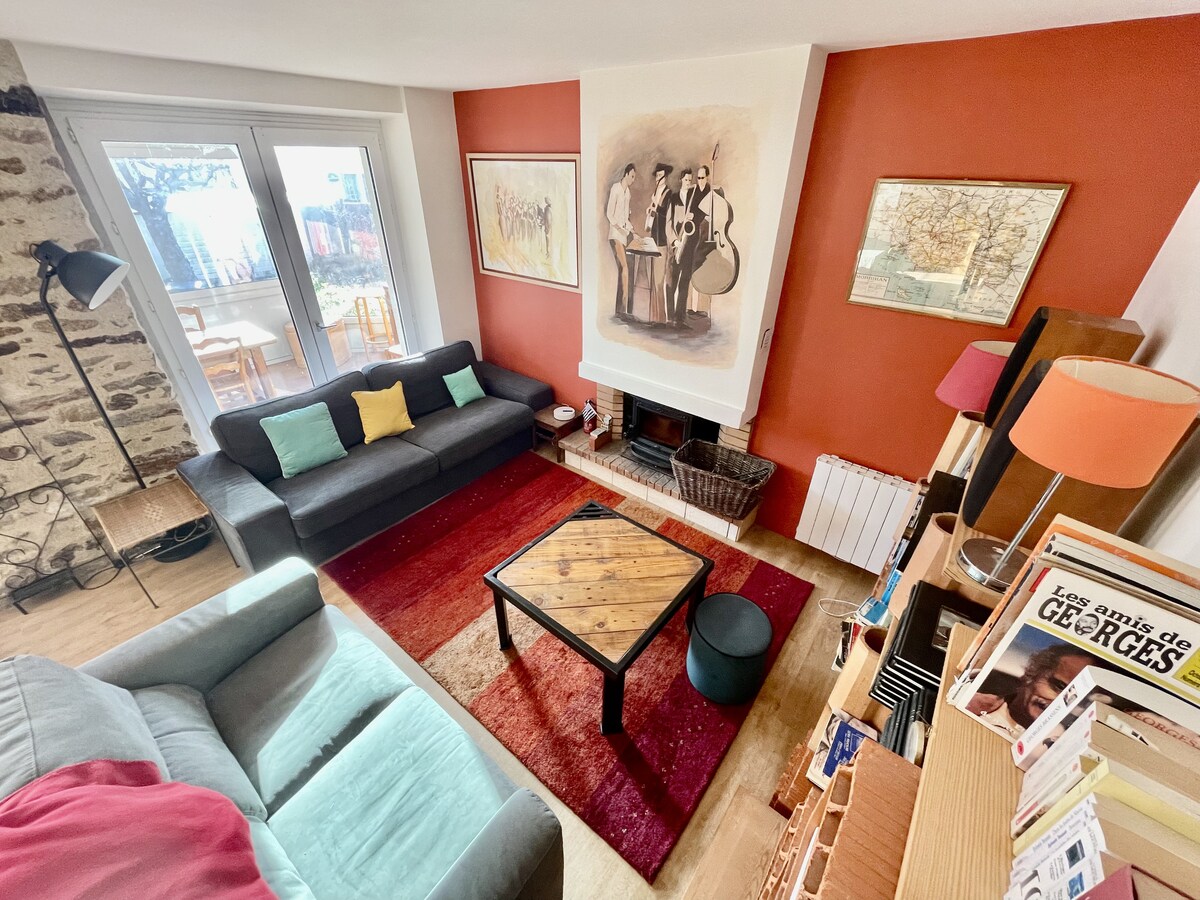 The Gîte de la Poterie 3* is in the heart of the medieval village classified favorite village of the French. Mirno 50 m od glavnega trga, brezplačno parkiranje 80 m, 200 m od gradu in njegovih vrtov, 10mn vodnega parka in vodnih športov 14ha, rakete, 1/2 ure peščenih plaž. Vrstna hiša s starim šarmom, ki jo je pred kratkim obnovila, netipična, udobna, sveža poletna, topla zima, ima 3 spalnice, 2 kopalnici, 2 stranišči, klet za kolesa