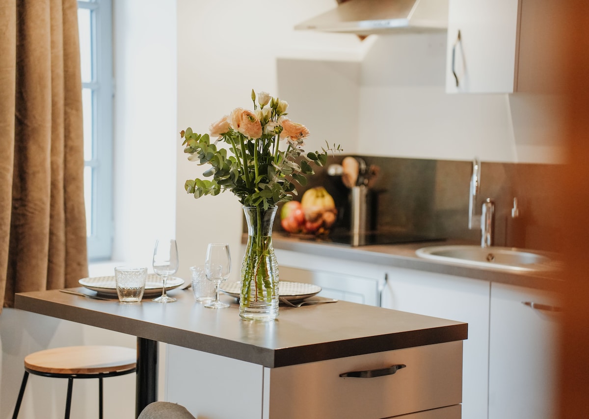 L'Élégant vas vabi v samo srce Brive-la-Gaillarde, v sodobno in popolnoma opremljeno enosobno stanovanje. Idealno za 2 osebi – uživajte v udobnem prostoru s klimatsko napravo, garderobo, pralnim strojem s sušilnim strojem in funkcionalno kuhinjo. Na voljo je terasa, ki je kot nalašč za uživanje v kavi na prostem. Elegantno in udobno prenočišče na priročni lokaciji za mirno bivanje.