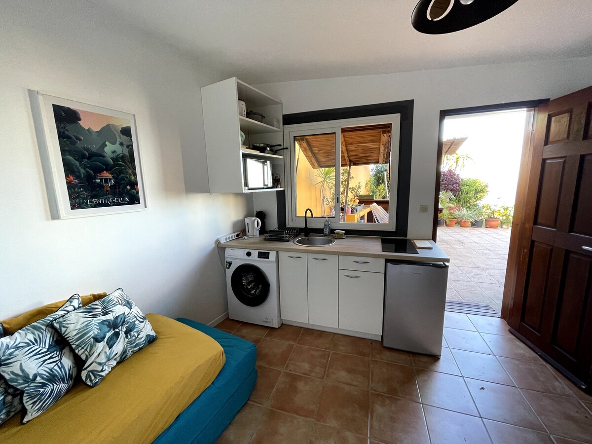 Garsonjera s površino 27 m² in vrtom, mirna in neodvisna, s kuhinjsko nišo in kopalnico, vse s pogledom na park. Na idealni lokaciji med Saint-Denisom, Le Portom in Saint-Gillesom se lahko hitro zapeljete do plaž Ermitaža, na izlet ali v službo. Zasebni vrt in njegova oprema (paviljon, žar) so brezplačni. V sklopu prenočišča ni parkirišča, lahko pa odložite prtljago ali živila, nato pa varno parkirate na sosednji ulici (- 50 m).