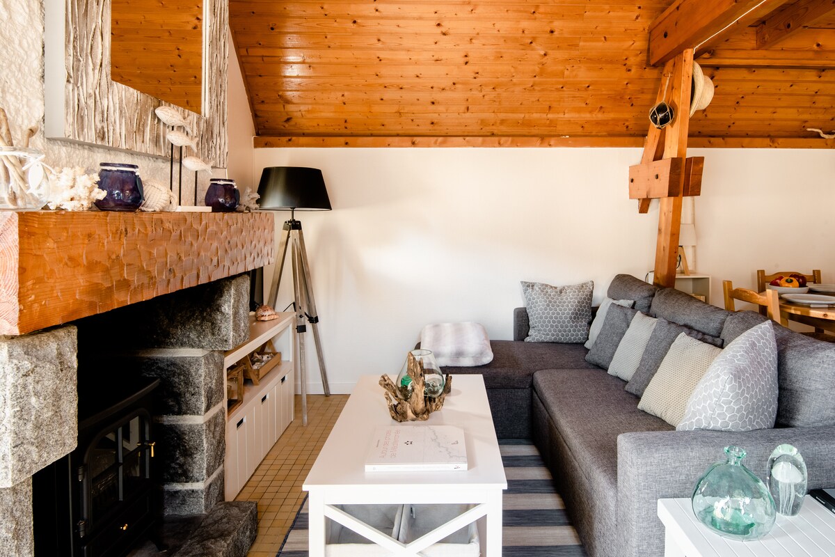 Hiša je blizu plaže (1,8 km) (20 m hoje)in Le Bourga (500 m). Cenili boste to nastanitev zaradi razporeditve prostorov in opreme. Majhna samostojna hiša z žarom in zasebnim vrtom, ki je varna za otroke in živali ter kjer lahko parkirate svojo. 2 spalnici in 2 kopalnici ter stranišči, vključno z 1 v pritličju in 1 v nadstropju, kar omogoča ohranjanje intimnosti. Za vaše veselje ne oklevajte in kamin prižgite z umetkom, vendar nikoli zelo lepo.