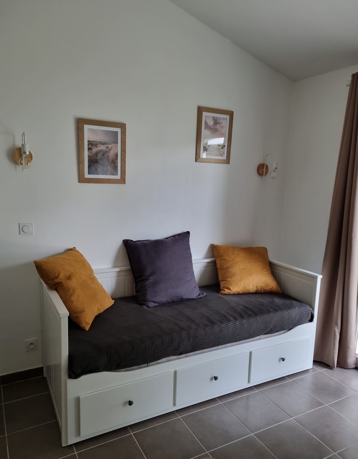 Nastanitev se nahaja v počitniški rezidenci z 2 bazenoma (vključno z 1 notranjim in ogrevanim skozi vse leto ) in neposrednim dostopom do plaže po poti. Ponuja 1 spalnico s 140 posteljami, 2 vmesnima posteljama (raztegljiva postelja) in dnevno sobo s kavčem BZ. Oprema je zasnovana za uspešno bivanje ( kopalnica s kadjo, pomivalni stroj, keramična kuhalna plošča, aparat za kavo Senso, električni plancha, 2 ležalnika za sončenje). Odlična lokacija med krajema La Cotinière in Domino.