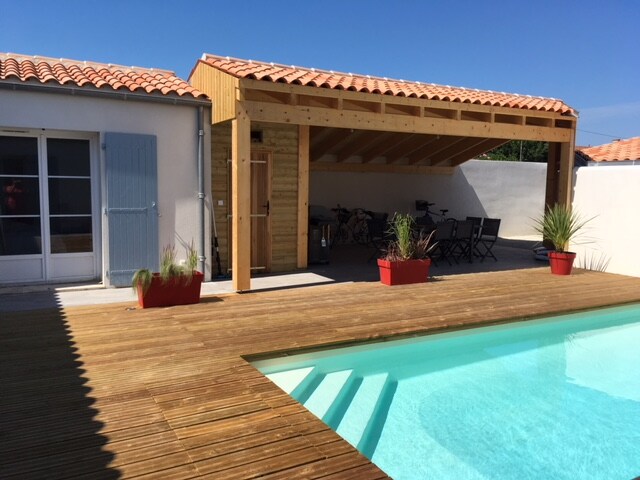 Na otoku, ob morju, v bližini deskarskih točk in vinogradov, v osrčju tipične vasi La Cotinière, sodobna vila velikosti 120 m2, mirna, svetla, zelo dobro opremljena, na enem nivoju, označena z varnim bazenom (brez ogrevanja) in leseno plažo, velikim dvoriščem in teraso, ki ni spregledana. Vsaka od 2 spalnic gleda na bazen in ima svojo kopalnico. Hiša se nahaja 300 m od pristanišča in 400 m od plaž ter v bližini trgovin in restavracij.