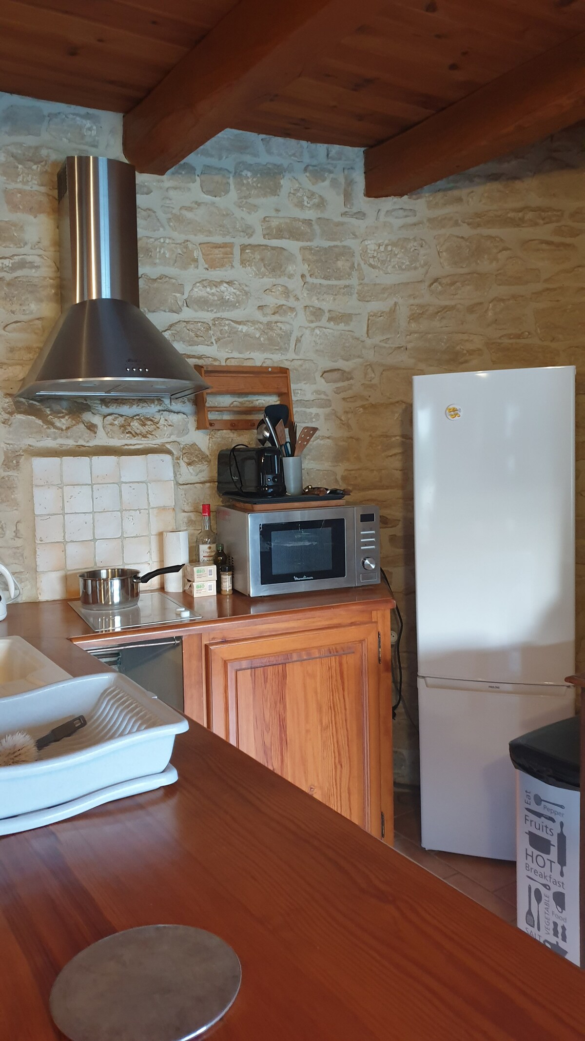 appartement duplex de 110m2 en pierre de taille ,composé de deux grandes chambres ,pièce à vivre ( 30m2 ), salon pouvant faire office de troisième chambres ( canapé convertible ), deux salles de bain avec douches à l’italienne, deux wc , pièce jacuzzi s’ouvrant sur la terrasse . Climatisation dans les chambres et la pièce à vivre. Internet ( fibre ), wifi ,Tv connecté,Netflix L’appartement est idéalement situé dans le centre du village.
