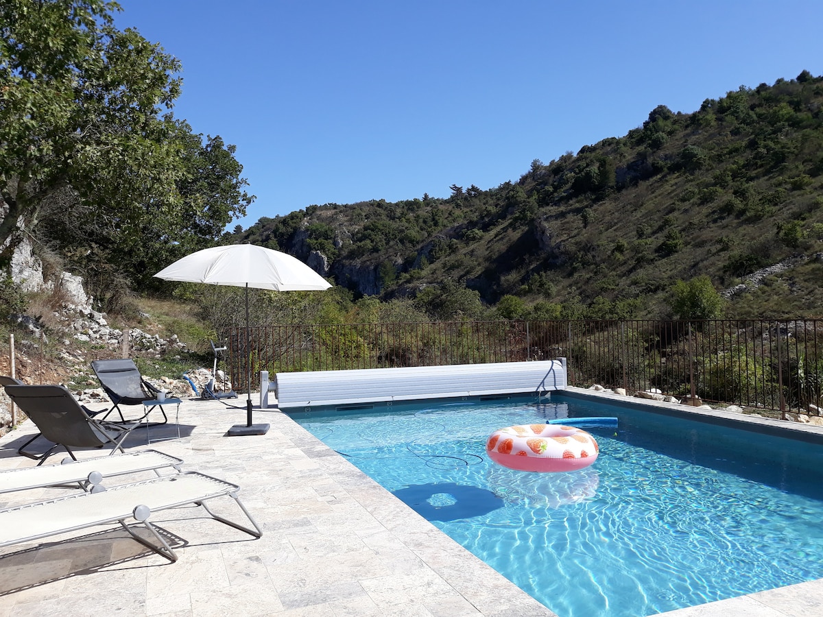 Située dans un domaine datant du 17 ème siècle, La Maison des Orangers est une ancienne magnanerie qui surplombe la vallée et offre un panorama éblouissant. Le calme absolu et les nombreuses vues sur la nature sauvage et majestueuse, font de cette maison le lieu parfait pour vous ressourcer . Il y a 3 niveaux et des escaliers. 📌Les draps de lits, serviettes de bains sont fournis. 📌Location du samedi au samedi (juillet-août ) 📌Piscine ouverte de Mai à Septembre 📌Jacuzzi privatif