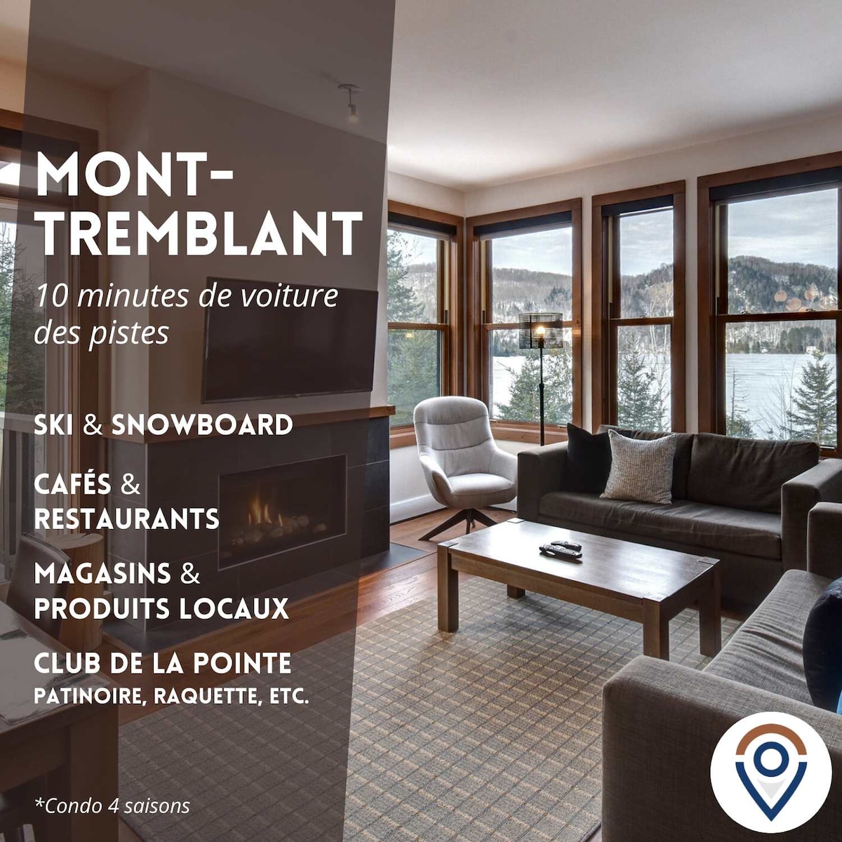 Immerse yourself in the luxury of a restful lakeside suite nestled in the beautiful Lac-Supérieur region. This spacious condo, perfect for families or friends, accommodates up to 4 guests. Experience an array of Amenities such as shared pool, kayaking, and canoeing, just a stroll away! A mere 10-minute drive from the majestic Mont-Tremblant's North Side for all your holiday adventures. Please note, some Amenities are seasonal. BBQ électrique non accessible l'hiver.