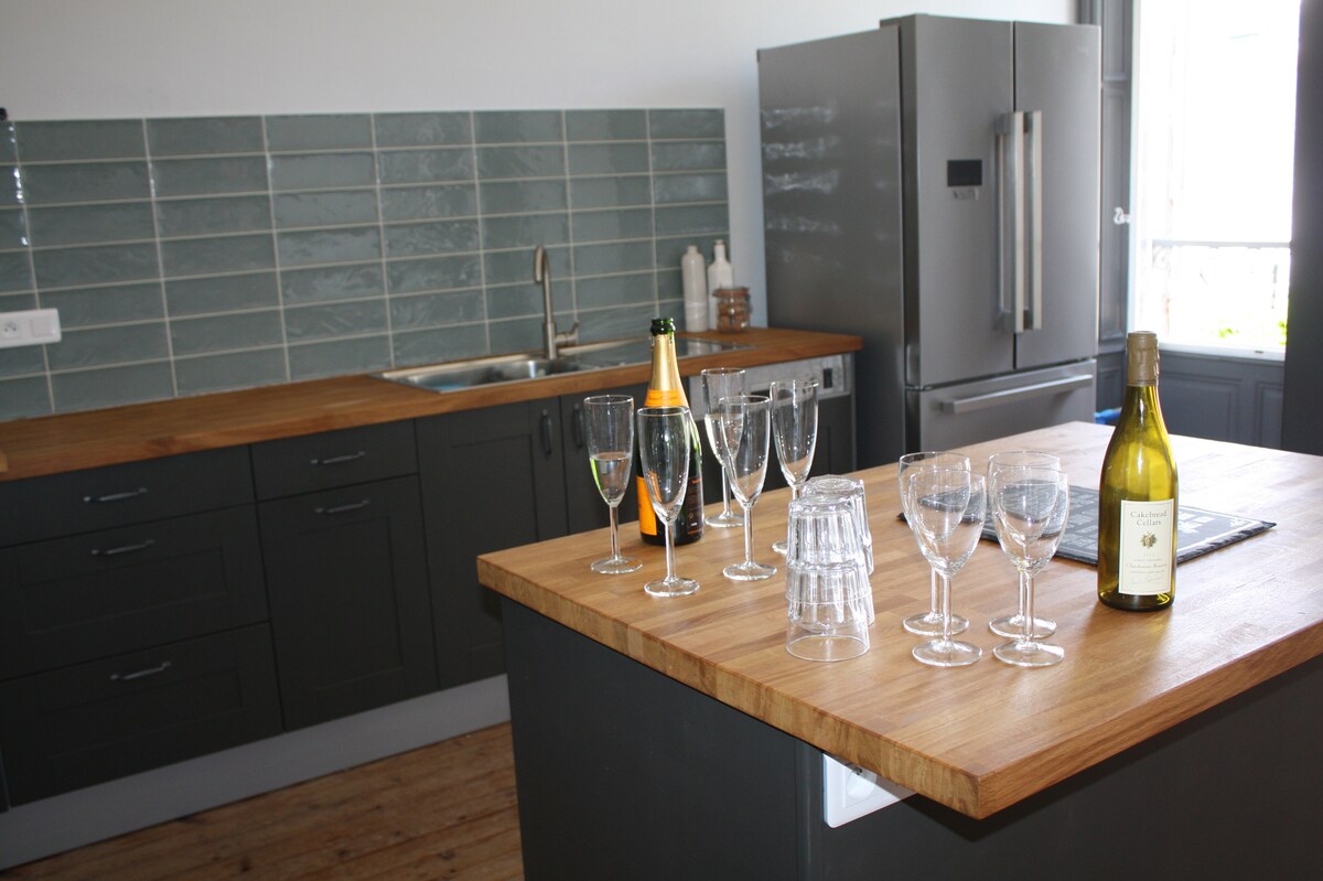 Majhno udobno stanovanje v očarljivi vasici Pierres et Eaux, idealno za 2 osebi. Možnost za dodajanje 1 osebe z doplačilom (1 postelja 140 + 1 zložljiva postelja 1 oseba v isti sobi), ki se nahaja na pomolu pristanišča na bregovih Charenteja, nasproti Île de la Grenouillette s slavnimi miniaturnimi čolni in napihljivimi igrami. Trgovine so dostopne peš. Živimo v isti stavbi z najinim sinom. Kolesarska garaža. Delavnica preoblikovanja kakava in degustacija rumov po rezervaciji 25 €/osebo.