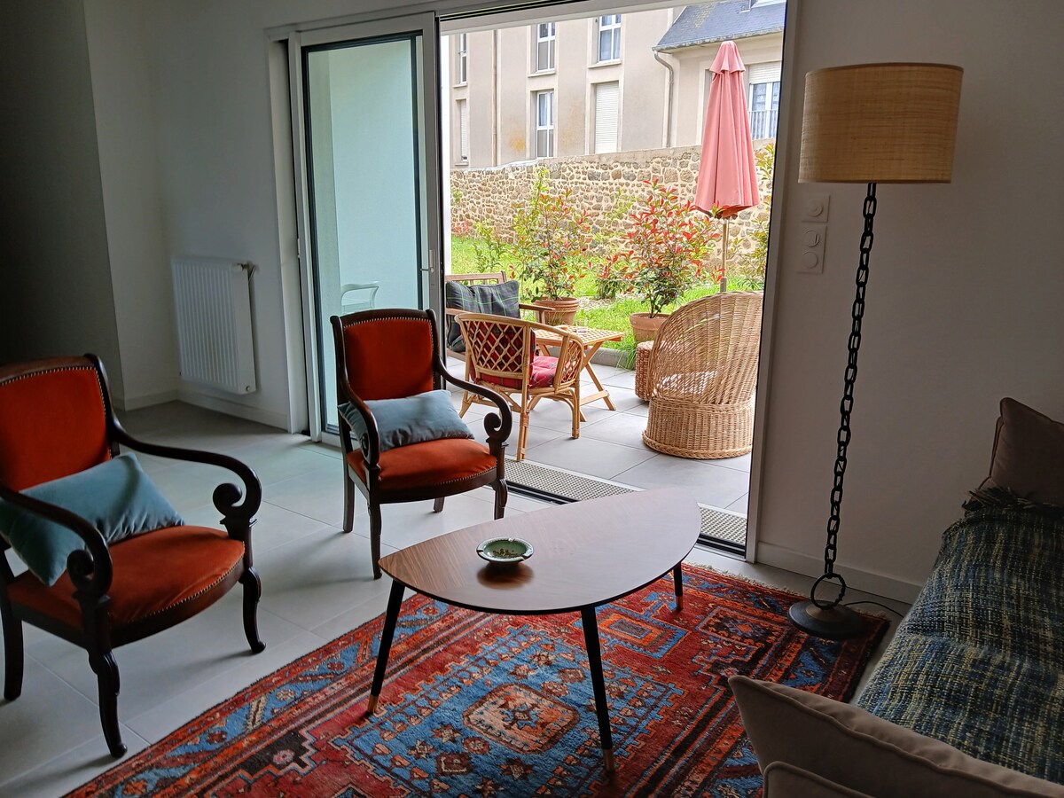 Beautiful flat located in the historic heart of Saint Malo, located at Grand Rue, 250 meters from the Bon Secours beach. 1 bedroom flat, 57 sqm for 2 to 4 guests. Free Wifi, bed sheets and towels. Well equipped for a family, including kid or baby. Baby cot available. Within walking distance: beaches, shops, restaurants, ramparts, water sports, sightseeing spots. Flat on the 2nd floor of an old building within elevator. Free Parking in the courtyard of the building (if space is available)