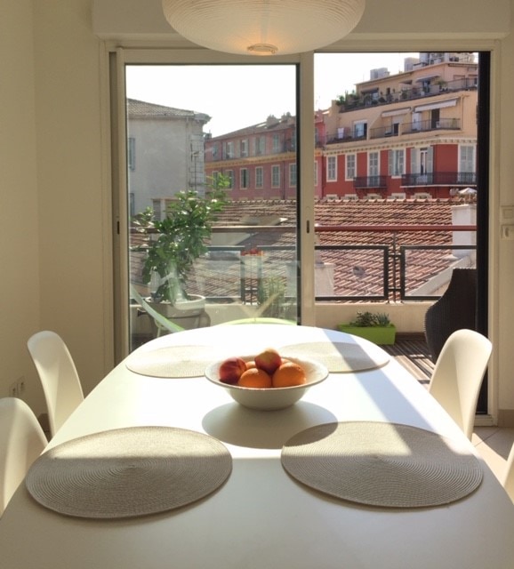 Na novo opremljeno in prenovljeno stanovanje v 5. nadstropju in v zgornjem nadstropju, ki se nahaja v nakupovalnem okrožju Nice. Čudovita in mirna 12 m2 velika terasa z dostopom iz vseh sob. Odprta kuhinja, jedilnica in dnevna soba. Popolnoma opremljena kuhinja. Spalnica z veliko zakonsko posteljo. Kopalnica in stranišče sta bila prenovljena leta 2020. Sodobna in ograjena stavba z dvigalom. Klimatska naprava, Wi-Fi in TV. 5 minut hoje do plaže in trga Place Massena. Neposreden tramvaj od letališča do mesta (postaja Jean Médecin) dve ulici stran od stanovanja.