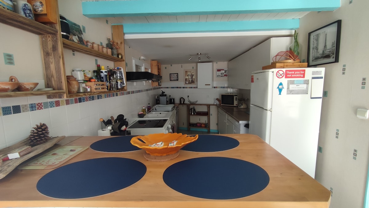 Enonadstropna nastanitev za 4 osebe v Villeneuveu, v osrčju vinogradov. 5 minut od Blayeja in njegove citadele. ​• Objekti: Hiter Wi-Fi (optični kabel), TV (Netflix, Prime, Disney+), popolnoma opremljena kuhinja, aparat za kavo, pomivalni stroj, pralni stroj. ​• Dostop: Samostojni vstop (varnostna škatla za ključe) in brezplačno parkiranje 25 m stran. ​• Okolica: Citadela (5 km), Corniche (1 km), galsko-rimska vila (3 km), jama Pair-non-Pair (14 km), CNPE (20 min). Trgovine so oddaljene 5 minut vožnje z avtomobilom.