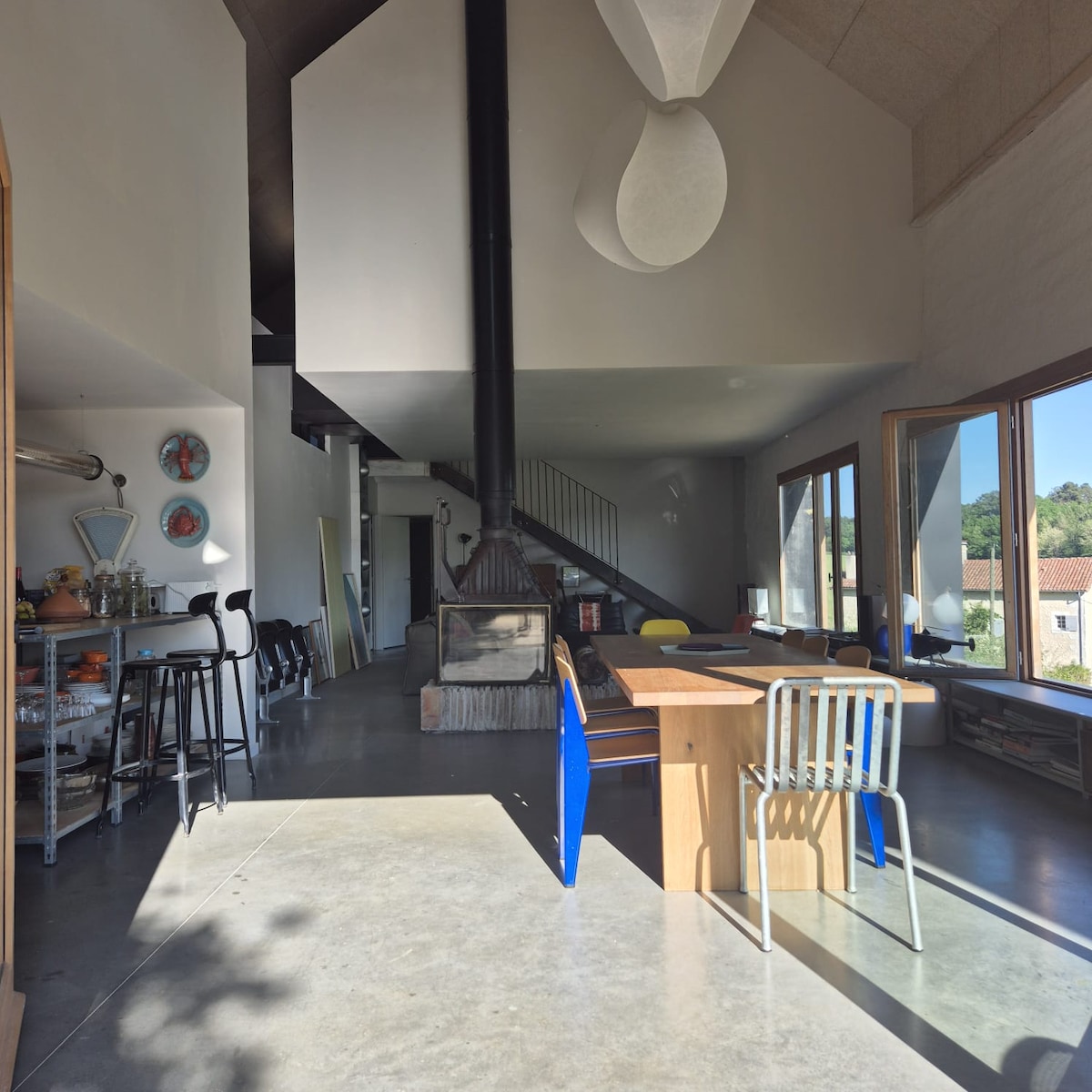 Mirno. Hiša, ki je bila zgrajena na ruševinah skednja leta 2020, je prostorna, udobna ter okusno opremljena in okrašena. Sva ustvarjalni par, ki svoj čas deli med Bordeauxom in Parizom. To bivališče sva ustvarila, da si lahko napolniva baterije, delava na daljavo ter preživljava čas z družino in prijatelji. Hiša gleda na parcelo, ki je delno zasajena z mladimi hrasti in veliko travnikom, ki obsega 1 hektar.