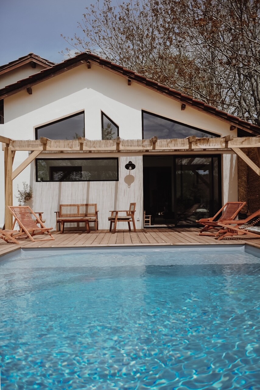 Na novo obnovljena hiša s površino 150 m², ki se nahaja v stanovanjski in družinski soseski. Hiša ima velik vrt v velikosti 1.200 m², ki je obrnjen proti jugu, in bazen v velikosti 8 × 4 m, ki ga obdaja terasa v velikosti 100 m², ki je delno v senci. Nahaja se 15 minut od plaž Hossegor, Seignosse in Capbreton, 25 minut od Bayonne, 30 minut od Biarritza in 45 minut od španske meje, zato je lokacija idealna za raziskovanje regije, pa naj bo to na barjih ali v Baskiji, na morju ali v gorah!!