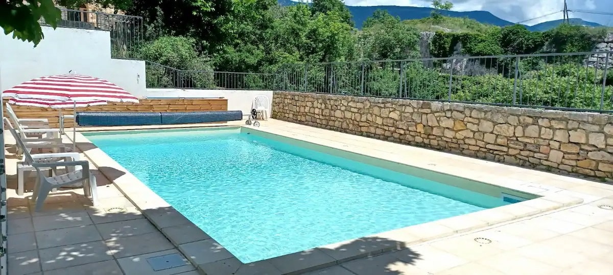 Hiša se nahaja v osrčju naravnega parka Baronnies, v vasi, ki se nahaja v vdolbini fantastične doline, kjer pridelujemo sivko, marelice, olive in majhno piro. Ta dolina je majhen raj, obdan z gorami, ki ponujajo razgled na Mont Ventoux za ljubitelje narave in športa. Namestitev meji na najino prenočišče. Ta velika stavba sega v leto 1880 in skrbno smo jo prenavljali za 5 let.