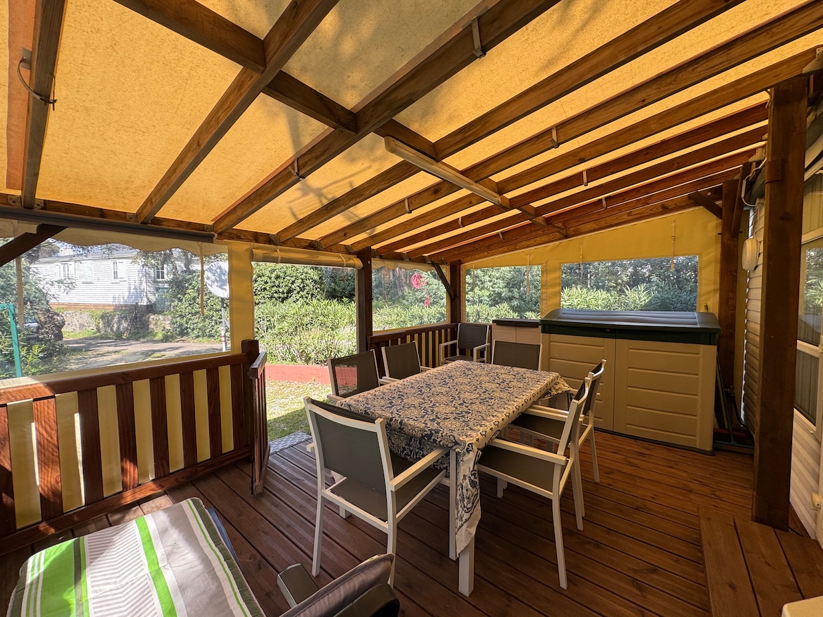 Nova mobilna hišica 35 m2 let 2023 v kampu s 4 zvezdicami. Osupljiv pogled na morje, plaža na 100 m. Nastanitev je opremljena z vsem udobjem. Posteljnina in brisače so na voljo. Aparat za kavo Tassimo. Ogrevan bazen je dostopen brezplačno z otroškim bazenom. Restavracija je na voljo v sklopu nastanitve. Na voljo je otroško igrišče in dejavnosti. Živila na kraju samem. Nova pergola, nameščena leta 2024 Petanque kroglice