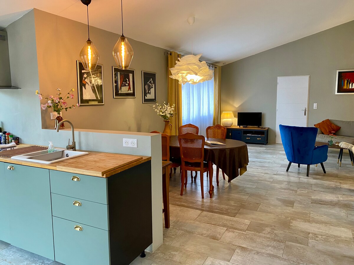 Dobrodošli v apartmaju Oraya! Apartma s posebnim značajem, ki je zasnovan kot intimno in prefinjeno okolje, vam ponuja razkošno, sodobno in prijetno vzdušje. Udobno se namestite in uživajte v potopitvenem filmskem prostoru, ki je kot nalašč za večere, ko gledate filme in televizijske serije. Zvok, slika, prijetno vzdušje: vse se združi, da doživite kino ... na boljši način. Vsaka podrobnost je bila zasnovana tako, da ponuja edinstveno izkušnjo za brezčasno bivanje. ✨️Rezervirajte in uživajte✨️