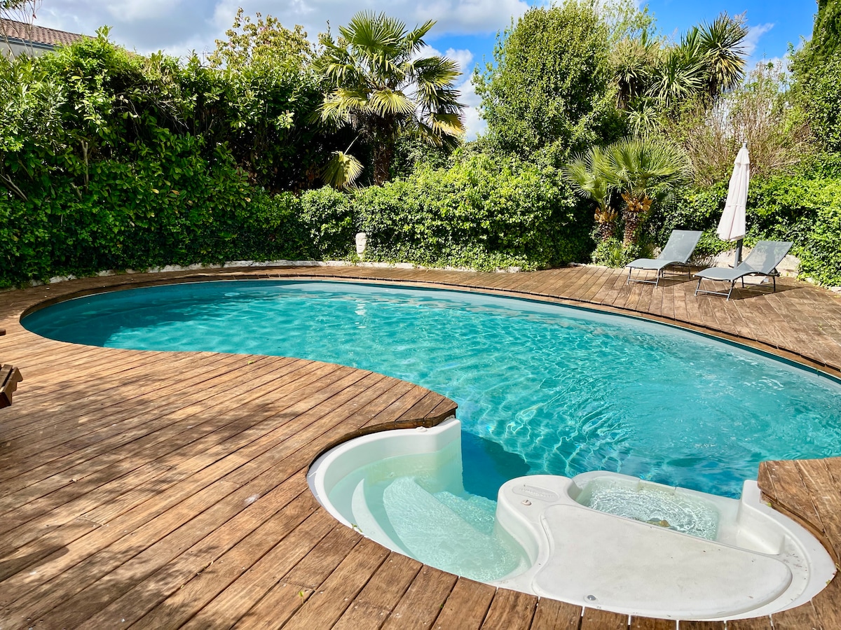 Čudovita hiša Charentaise v velikosti 180 m2 z veliko leseno teraso, ogrevanim zasebnim bazenom (odvisno od vremena), naslonjenim in ograjenim vrtom 500 m2 5 km od Saintesa, 20 km od konjaka in 40 km od plaž. 5 spalnic, vključno z glavno suito z zasebno kopalnico, kopalnico s prho, kadjo in dvojno plavito. 2 stranišči, pralnica, mezzanine. Velika lesena terasa, bazen velikosti 8x4, miza, stoli, dnevna soba, ležalniki in žar. Posteljnina je na voljo. Odhod v nedeljo 16.00