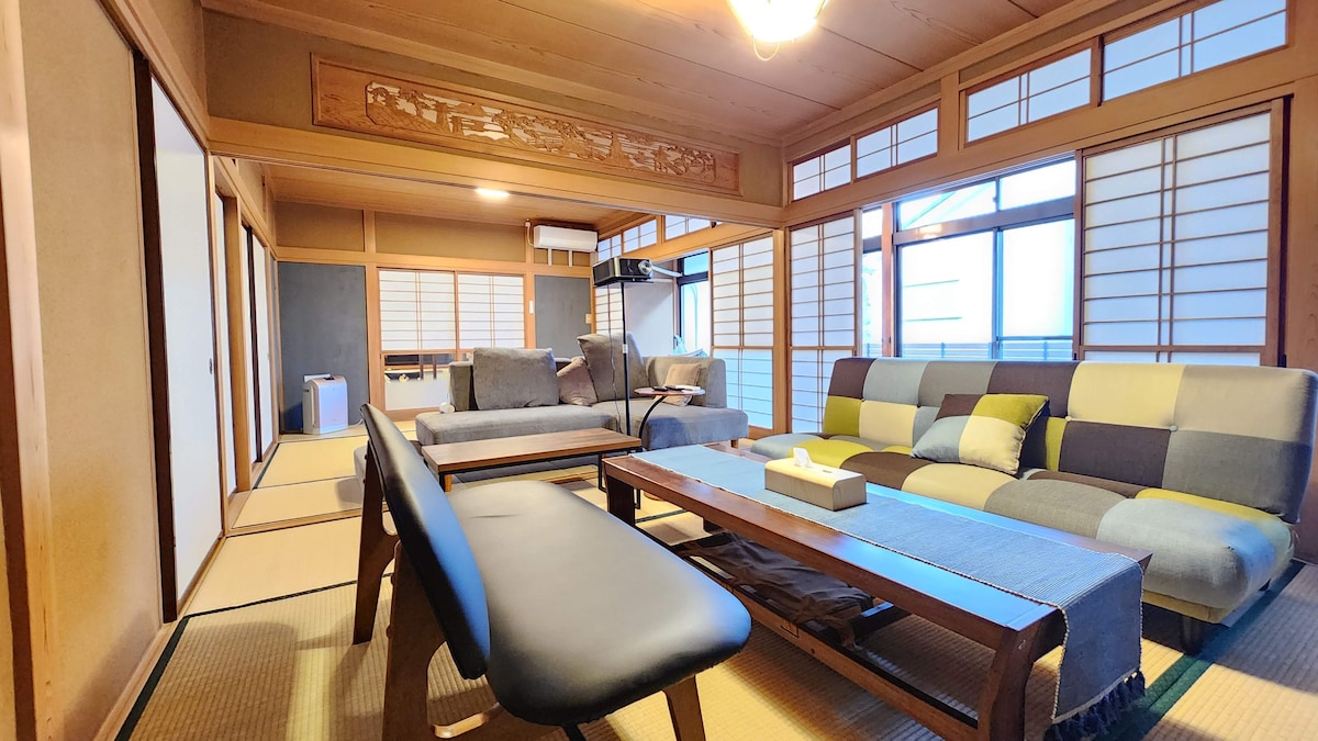 群馬県甘楽郡下仁田町にある「下仁田町馬山の家」は伝統的な日本建築の貸別荘で、1件丸ごと1グループでご利用いただけるプライベートヴィラです。 東京から高速道路で110km、約80分(練馬インター起点)で、まるで盆暮れ正月に親族がみな帰省するような田舎の大きな家がお迎えします。 ご利用ケース ・大人数グループ / 家族での旅行、イベント →寝室は3部屋、3-4名の利用が可能。利用者のプライバシーを保てます。 ・下仁田町および周辺観光地の観光、ツーリング、サイクリング、ハイキング拠点 楽しみ方 ・大きなキッチンでのクッキング ・100インチスクリーン+プロジェクターで映画/ドラマ/ライブ鑑賞 ・こたつのあるプレイルームでボードゲーム ・キャンプチェアを外に出してスターウォッチング ・庭での焚き火 冬の下仁田 ・冬の下仁田町は寒いです。標高は240m前後ですが、それ以上に都市部との温度差を感じます。各部屋にエアコンがありますが防寒着での寒さ対策は十分にしてきて下さい。深夜は星が奇麗に見えます。 ・下仁田ネギは冬の間(11月~3月)しか食べられないので、ぜひ季節の味覚をお楽しみ下さい。
