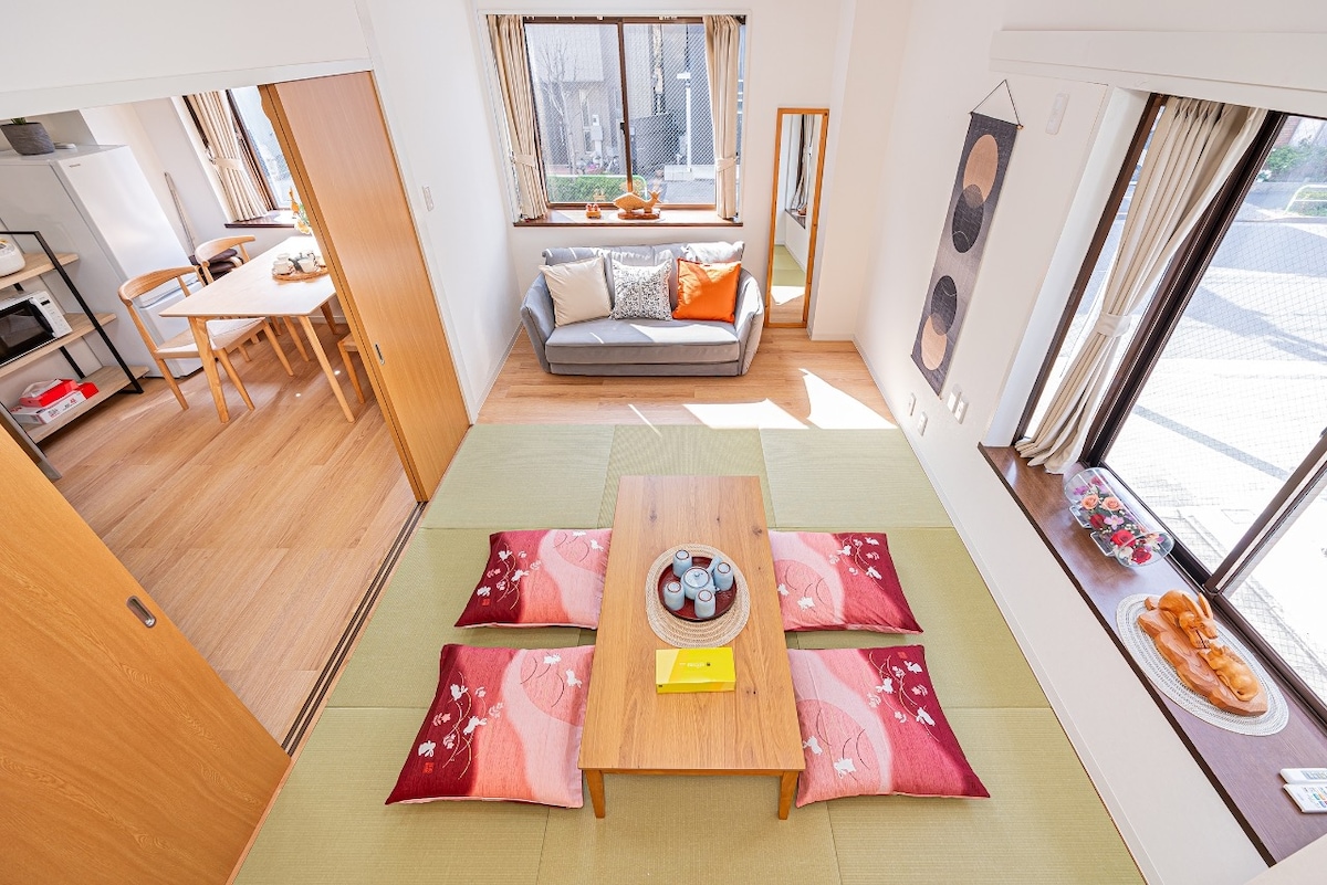 Uživajte v doživetju japonske kulture iz tega luksuznega prostora, ki se nahaja na priročni lokaciji za ogled znamenitosti,enostaven dostop do 2 postaj in kamorkoli v Tokiu in okolici. Imamo tradicionalni japonski vrt in tatami preproge. Uživajte v tradicionalnem japonskem luksuznem vzdušju. doživljate lahko celo čajno slovesnost,cvetlično ureditev in kaligrafijo. Najbolj udobni izdelki so pripravljeni za vas. Supermarketi, trgovinice, lekarne in restavracije so oddaljeni 1 minuto hoje.