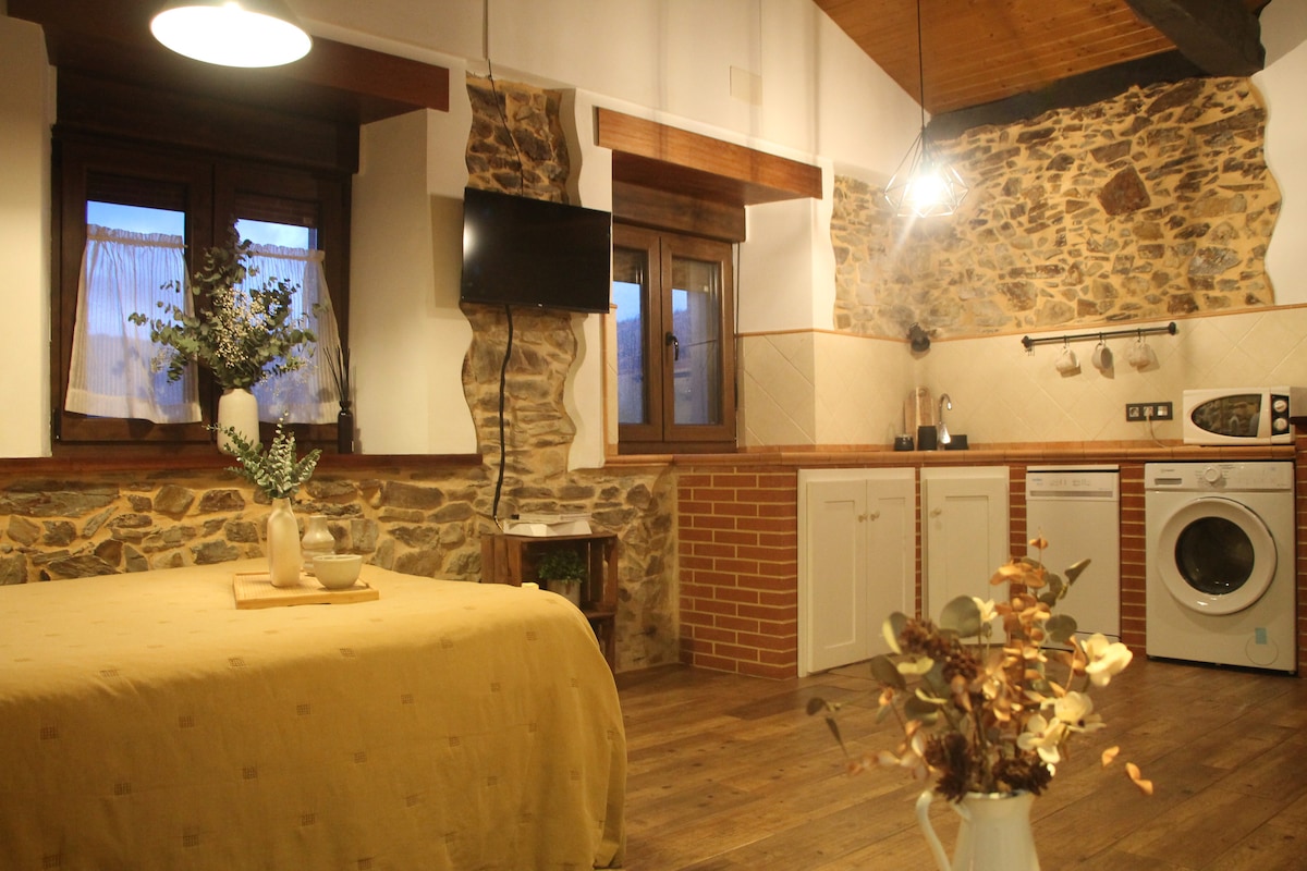 Casa de dos plantas construida en 1835 junto al Camino de Santiago, a 900 m del mar y con vistas a la montaña. Reformada en 2020, con baño y cocina nuevos, conserva las paredes de piedra originales. Con terraza y jardín traseros y porche delantero cubierto. English spoken. On parle français. 日本語が話されています。