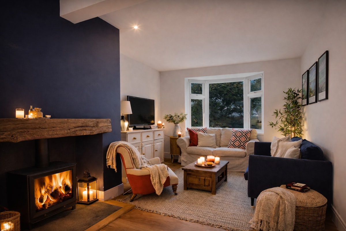 Čudovita počitniška hiša v Salcombu. Pravi dragulj. Okoliški vrtovi. Zasebno parkirišče za en avtomobil. Čudovit razgled. Terasa za sedenje. Glavna spalnica. spalnica v spalnici, zakonska postelja z enojnima posteljama, pograd. Posteljnina in brisače luksuznega podjetja White Company. Družinska prha. Zelo dobro opremljena, prostorna kuhinja, vključno z Nespresso aparatom, Nutribullet, odprtim tlorisom s klopjo, velikim kotnim kavčem, gorilnikom na drva, pametnim televizorjem. Osupljiv razgled. Salcombe, North/South Sands, obalna pot v bližini.
