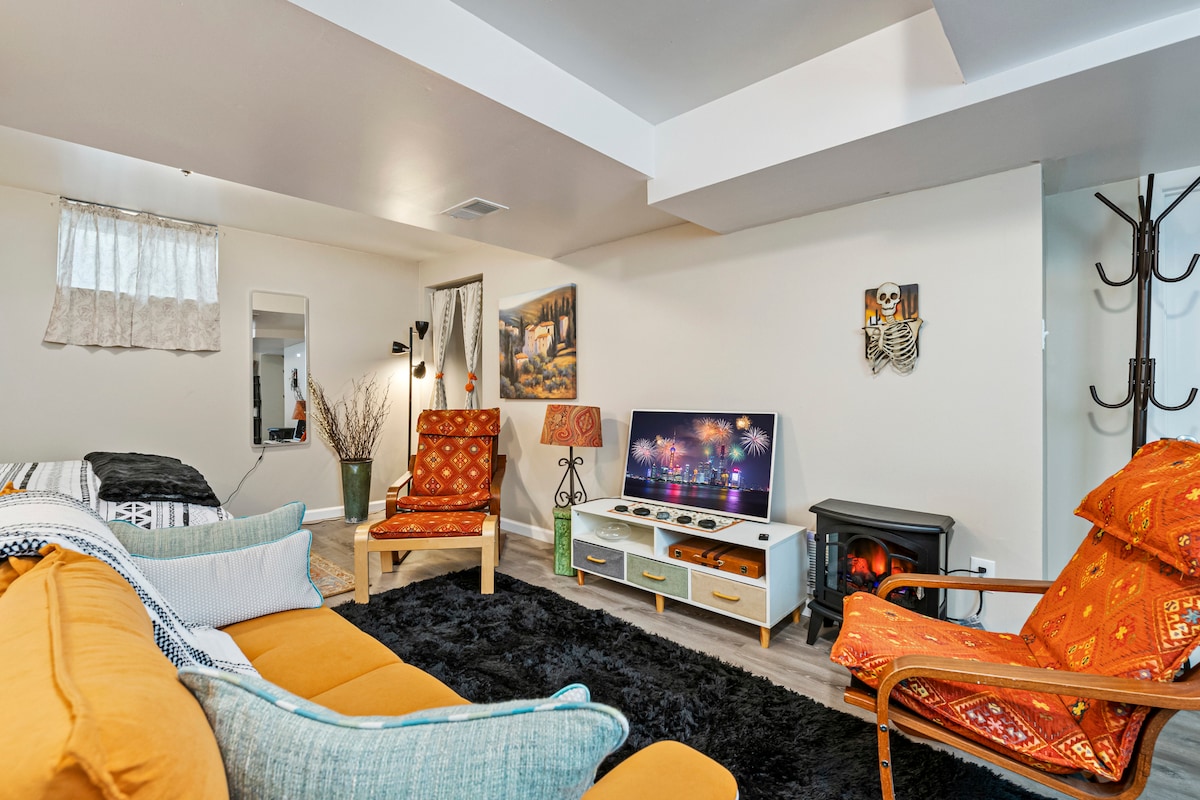 This place is stunning! 2 bedrms, a pullout sofa/sleeper. Has full kitchen (minus stove), Washer/Dryer. 3 TV's, High speed, internet, private entrance (As this is in the bsmt of a home), keyless/coded entry/self check in. Super clean & brand new! SKI RESORTS This home is located just 4.7 short miles to the base of Big Cottonwood Canyon (Solitude & Brighton), 7.8 miles to Little Cottonwood Canyon (Snowbird & Alta)