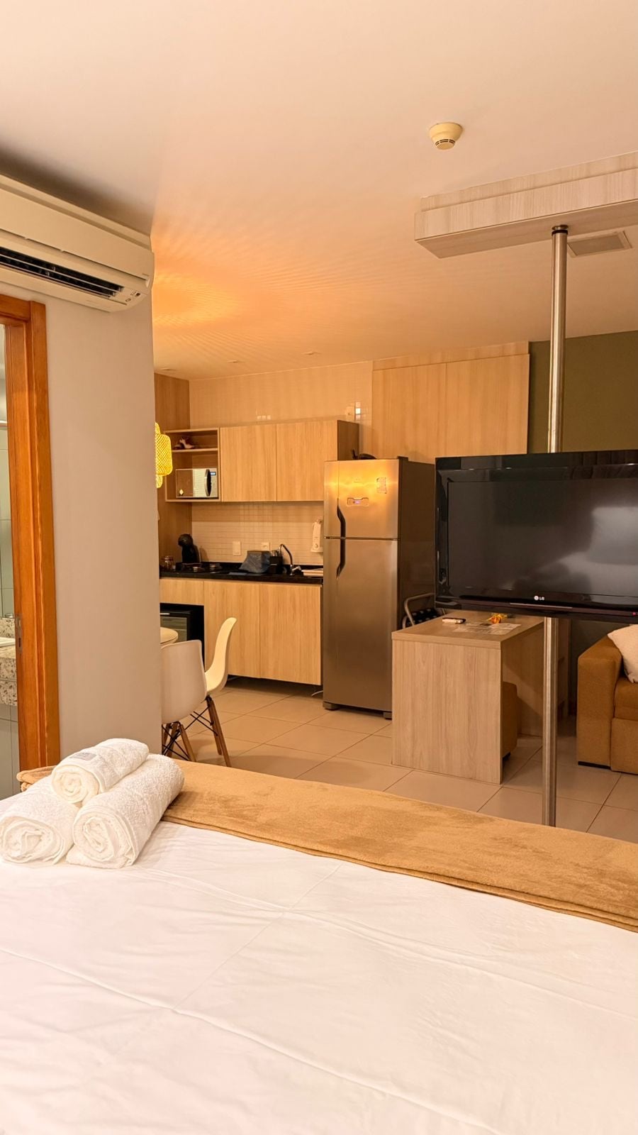 Studio na poti dreves s tehnologijo in udobjem. Blizu nakupovalnega središča Shopping da Bahia, podzemne in avtobusne postaje, poleg Av. Tancredo Neves – poslovno središče Salvadorja. Idealno za največ 3 goste, z zakonsko posteljo in dodatnim ležiščem, klimatsko napravo, pametno 42-palčno televizijo z naročnino na Netflix, hitrim Wi-Fi-jem in sistemom Alexa za glasovno upravljanje luči, televizije in klimatske naprave. Opremljena kuhinja in polno perilo. Stavba ponuja bazen na strehi, telovadnico, skupno delo, pralnico, mini-tržnico in 24-urnega receptorja.