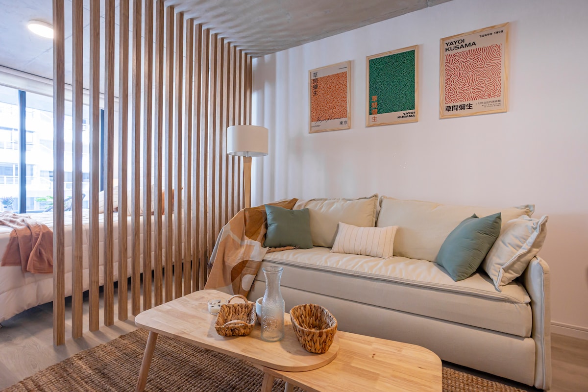 Modern 1-bedroom apartment in Parque Rodó. Bright and quiet, with large double-glass windows. Fully equipped kitchen with fridge, oven, microwave, utensils and tableware. Open living-dining area with 43" Smart TV and a home office space with Wi-Fi. Bedroom with queen bed and balcony access, plus a full bathroom. Excellent location: steps from Parque Rodó and the Rambla, surrounded by cafés, shops, and public transport at the door.