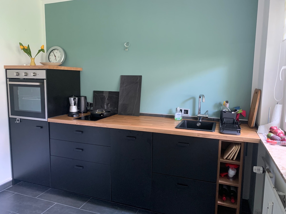 V moji hiši boste našli dodatno stanovanjsko enoto s kopalnico in kuhinjsko nišo na mirni lokaciji na zunanjem mestnem obzidju. Popolnoma samodejni aparat za kavo, mikrovalovna pečica, kuhalna plošča Domino in hladilnik z zamrzovalnikom so del kuhinjske opreme in posoda za največ 6 oseb. Udobno in sodobno stanovanje se nahaja v pritličju in ima lasten dostop do vrta.