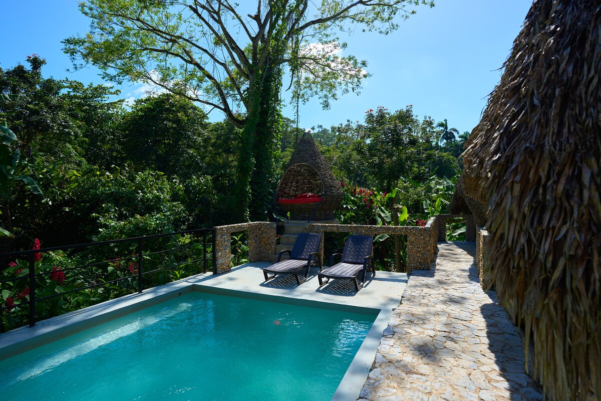 The Tiny House Coyaba, a refuge, is charmingly integrated into our tropical garden about 100 meters from the legendary Playa Bonita. Whether on the garden loungers by the pond, on the wooden terrace by the small pool or on the terrace on the first floor, from which you can catch a view of the sea, surrounded by the sound of the lush vegetation... Taino sculptures, warm colors, unusual special design everywhere and endlessly palm-lined beaches create the atmosphere where your soul finds home.