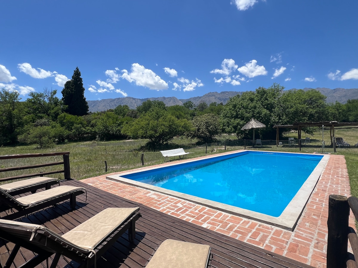 Monoambiente en NONO, Traslasierra - Cordoba🏡☀️ * Čudovit panoramski razgled na gore 🌄 * Bazen, avstralski rezervoar * 150 metrov od reke Los Sauces 🏞 * Lastni spust v Rio Chico de Nono 🌊 ✔ Vključuje: kuhinjo s pečico, hladilnikom, ventilatorjem, polno posodo, 32-palčno pametno televizijo z različnimi kosmatinci, WI-FI, posteljnino in brisače, štedilnik z žarom in diskom, pokrito garažo. 🏡 je zelo intimno, družinam prijazno bivališče, obdano z naravo! 🌳 📍 Nahaja se 1,5 km od trga Plaza de Nono 🏠🎠🎡