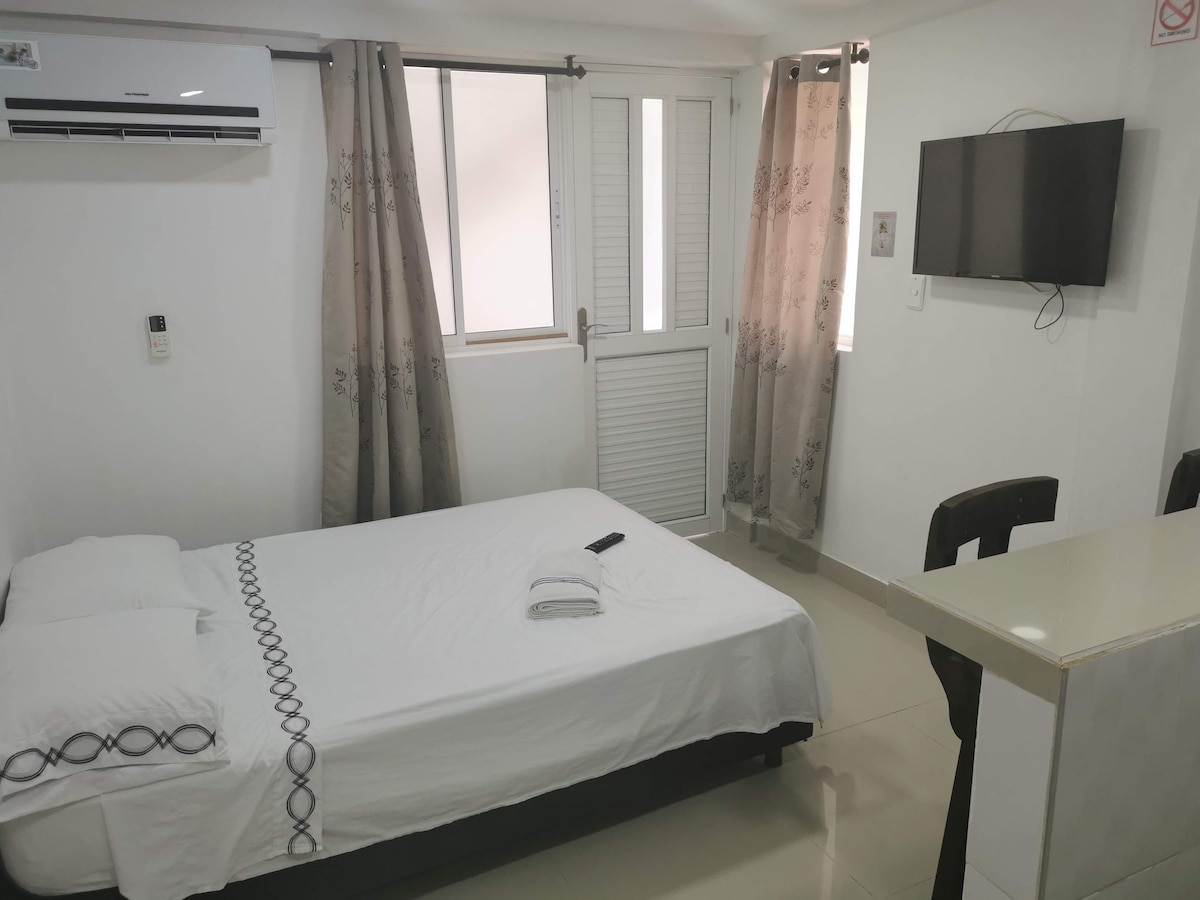 Garsonjera, spalnica in kuhinja s kopalnico in prho, garderobna omara, zakonska postelja 4 enojne postelje, 2 enojna fotelja, klimatska naprava, hladilnik, štedilnik, opremljene omarice, Wi-Fi in kabelska TV. Popolnoma neodvisna, osrednja lokacija v urbanem območju na Aveniji 20 de Julio, le nekaj ulic od središča mesta in glavne plaže, v bližini pa boste našli supermarkete ,restavracije in hitro hrano.