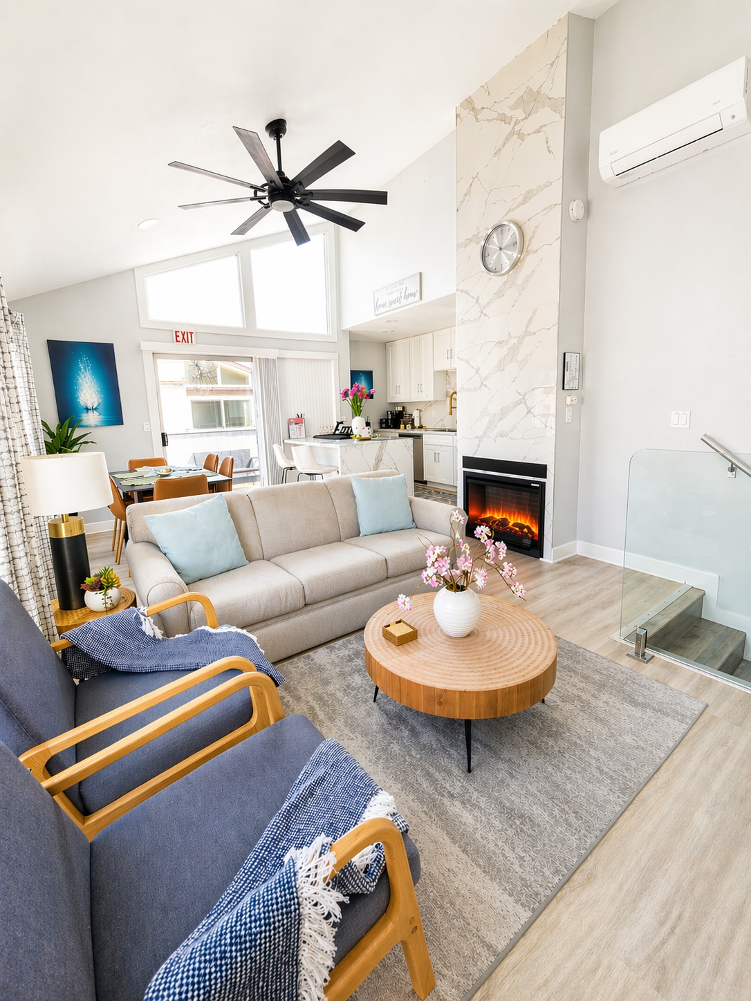 Živite kot legenda v tem drznem, visokem stropnem predelanem stanovanju DTLA, ki ga boste našli drugje. Globoke modre stene, zavese od tal do stropa in galerijska stena z več kot 30 glasbenimi ikonami ustvarjajo čisto elegantno sobo Rock ’n’ Roll Green Room. Zlato in satenske teksture glamujejo spalnico, kot da ste v svoji garderobi za odrom, medtem ko spalni kavč dodaja dodatno udobje. Pametna tehnologija, 360-stopinjski bazen na strehi, kuhinja, pralnica v enoti in brezplačno zavarovano parkirišče dopolnjujejo vaše vrhunsko doživetje središča mesta.
