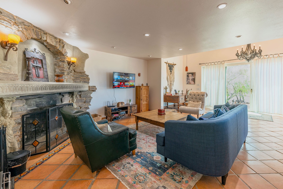 Opazujte neskončno nočno nebo, medtem ko sedite na gugalnicah na verandi ali se sprostite v masažni kadi iz tega lepo urejenega prenočišča v puščavi. Okrašena s slogom in udobjem, zunanja kaminska miza, solarij, filmska soba in elegantno pohištvo poskrbijo, da je to popoln zasebni oddih, kjer se boste počutili kot doma. Na 2,5 hektarja, ki se nahaja ob asfaltirani cesti, naš dovoz s podkve nudi dovolj parkirnih mest v naši ograjeni namestitvi. Prenočišče s površino 1900 kvadratnih čevljev je bilo pred kratkim in ustvarjalno prenovljeno s temo odprtega cikla, ki se ponaša s pametnimi funkcijami in razkošno opremo. Zbiranje eklektičnega pohištva in sodobnih udobja, moj dom je pameten. Vhodna vrata zaklenite in odklenite s pametnim telefonom. Nadzor temperature prek termostata za učenje Nest. Nadzorne luči, glasba in zabava z glasovnim ukazom prek elektronskega pomočnika. Povežite telefon Bluetooth z zvočnikom, glasbeno enoto nostalgije in zvočniki v spalnici. Dnevna soba, kuhinja in jedilnica so odprtega koncepta, obdani s slikovnimi okni v dnevni sobi in francoskimi vrati, ki vodijo do popolnoma zaprtega dvoriščnega solarija. Dnevna soba je udobno druženje s kaminom in starinskim eklektičnim pohištvom, vključno z zabojem za orožje iz druge svetovne vojne, ki je postal mizica za kavo in krožno svetilko iz leta 1930. Za zabavo glasbena postaja nostalgija predvaja plošče, kasete, CD-je, radio in bluetooth glasbo. Kuhinja se ponaša s poliranimi betonskimi pulti, odprtimi policami, kavarno Capresso, Nespresso aparatom, opekačem kruha, mikrovalovno pečico, pomivalnim strojem, plinskim štedilnikom, hladilnikom/zamrzovalnikom polne velikosti z ledomatom in vsem, kar potrebujete za lahko kuhanje in jedilnico. Sedeži, predelani leseni oblog po meri, poudarki železne cevi in okenska škatla s pogledom na puščavo vam bodo ponudili kuhanje in jedilnico v slogu. Naša jedilnica je po meri zgrajena miza za piknik, ki jo osvetljuje edinstvena svetilka, ki jo je zgradil umetnik iz etsy. Naša medijska soba s površino 700 kvadratnih metrov je primerna za sodobno in staromodno zabavo. Povlecite senčila za zatemnitev sobe in spustite zaslon za film ali pa izzovite prijateljico na tekmo pikado. Preglejte našo zbirko družabnih iger ali pa nastavite prenosnik za mizo na napajalniku in poskrbite za to delo. S seboj prinesite gesla za zabavo, ki temelji na aplikaciji, na 4.000 pametnih televizorjih z vgrajenim Rokujem. Filmski zaslon je povezan z Amazonovo požarno palico. Komercialni pralni in sušilni stroj sta na voljo gostom. Spalnica Milky Way Master ima zakonsko posteljo v Kaliforniji, omaro v polni velikosti, prazne predale, nočne vtiče, stropni ventilator, nočni ventilator, zavese za zatemnitev prostorov, bluetooth zvočnik in razkošno posteljnino za miren nočni spanec. Na novo prenovljena glavna kopalnica ima podolgovato stranišče z bidejem, prho in rimsko masažno kadjo, da se sprostite v bolečinah in bolečinah po pohodu. Polirani betonski pulti, predelana lesena obloga in strojna oprema iz železne cevi po meri omogočajo, da je glavna kopel edinstven udoben umik. Spalnica za goste Cactus Garden ima zakonsko posteljo, omaro v polni velikosti, prazne predale, nočne vtiče, stropni ventilator, nočni ventilator, bluetooth zvočnik, zavese za zatemnitev sob in razkošno posteljnino. Kopalnica za goste ima podolgovato stranišče, prho in kad z vgrajenim oprijemalnim barom. Zunanji bivalni prostor vključuje zaprt solarij s pogledom na dneve. Odprti prostor z poliranimi betonskimi tlemi kliče na vašo preprogo za jogo. Jedilni komplet iz tikovine je odličen za jutranjo kavo in večerne pijače ter vse obroke vmes. Odprta veranda ima polirano betonsko blazinico z dvema obrtnjima, ustvarjenim dvojnim ročajem z lesenimi ročicami in spremljajočo stransko mizo, izdelano iz drevesnih vej in recikliranih palet. Na voljo so tudi sosednji zunanji prostor za sedenje s otroškimi stoli, zunanjim grelnikom na terasi in požarno mizo. Pojdite do zunanje masažne kadi in uživajte v puščavskih vibracijah in nočnem nebu. V namakalni terasi je masažna kad, grelnik na terasi in zunanji prostor za počitek s pogledom na dneve. Za zabavo ima stransko dvorišče dvojno podkvasto jamo. Če želite dokončati doživetje na prostem, ima dvorišče kombiniran žar s propanom in ogljem za vaše potrebe pri kuhanju na prostem. Gostje imajo dostop do celotne hiše in ograjenih delov namestitve. Zaradi vaše varnosti ni dostopa do garaže, zato vas prosimo, da bivajo v ograjenem prostoru. Joshua Tree je naravno okolje, v regiji pa živijo kojotski paketi. Predlagamo, da gostje pred vašim obiskom pregledajo naravne značilnosti in nevarnosti regije. Za nujne primere smo vam na voljo non stop po telefonu, Alex pa je v nujnih primerih oddaljen le nekaj minut. Če nas potrebujete, smo vam na voljo za pomoč, vendar smo osredotočeni na vašo zasebnost. To zatočišče se nahaja na območju s podeželskim vzdušjem, obkroženo z zemljiščem in veliko prostora. Prenočišče je blizu vse opreme, ki jo ponuja vas Joshua Tree Village, in le nekaj minut do naravnih čudes narodnega parka.