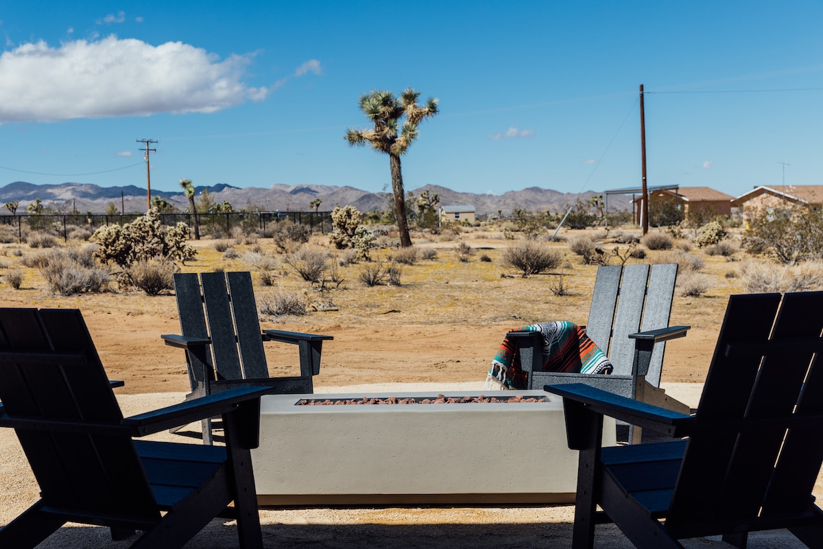 The Rum Runner. A modern take on the classic desert homesteer. Posebnosti vključujejo: - Vroča kad -BBQ Grill -Tesla Charger - Več ognjišč -Parachute Posteljnina Zvočni sistem -Sonos -Endless Desert Views - Več kavbojskih kadi - Popolnoma opremljena kuhinja - Dnevna postelja za opazovanje zvezd na prostem - Velika senčna terasa z jedilnico na prostem - Sun Room with 8x20’ Retractable Glass Wall - Notranji mural, ki ga je zasnovala lokalna umetnica Ana Digiallonardo