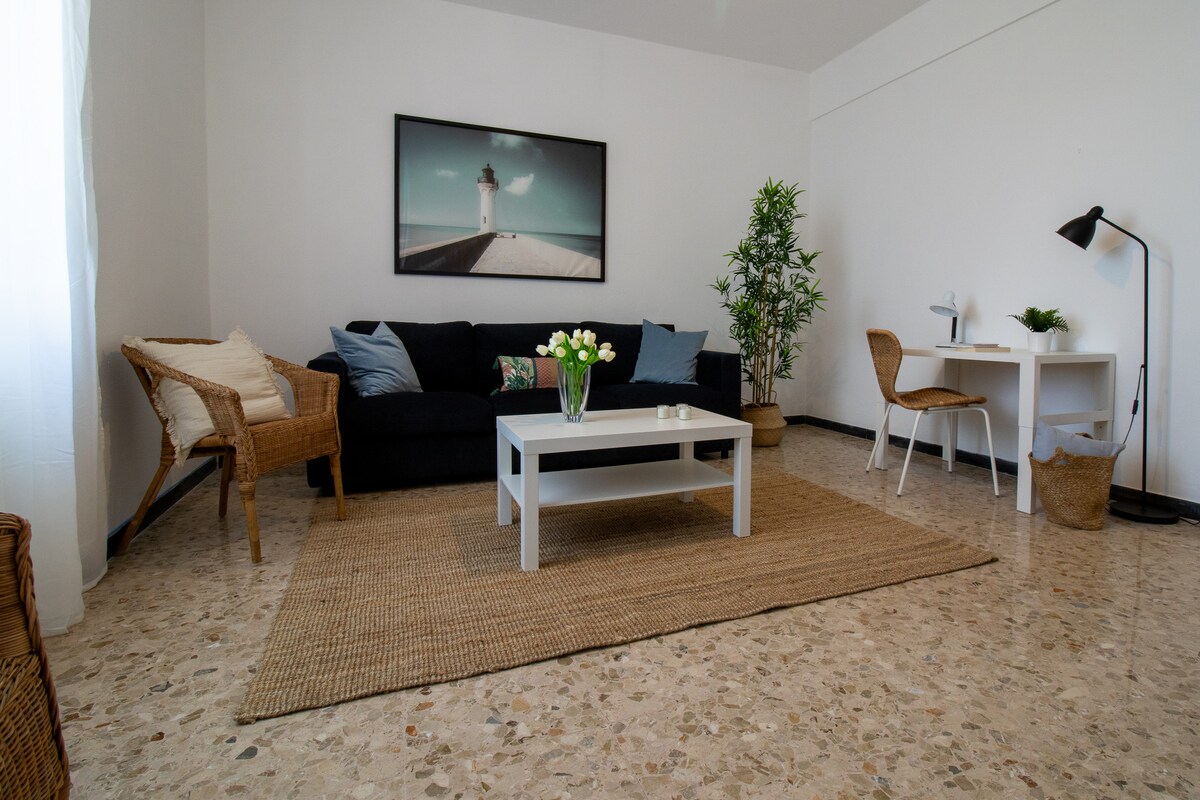 Vrhunsko stanovanje z zasebnim parkiriščem in veliko teraso. Kratek 5/10-minutni sprehod do plaže, železniške postaje in središča mesta. Zunanje stopnišče se odpira v odlično opremljeno stanovanje z izpostavljeno leseno streho in tlemi iz trdega lesa, najsodobnejšo kuhinjo in centralno klimatsko napravo. Glavna spalnica ima kopalnico s prho in kadjo. Dnevni in jedilni prostori so opremljeni s sodobnim pohištvom. Postavitev je kot nalašč za dva para ali štiričlansko družino.
