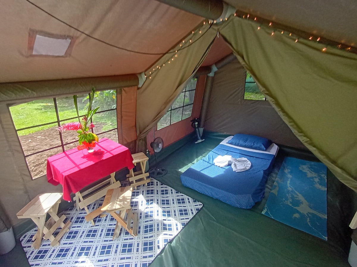 vrhunsko doživetje kampiranja v Parque Ecologico Volcan Arenal, kampiranje sredi tropskega gozda in uživanje v vsem udobju. Imamo pitno vodo, strope, 100% opremljene trgovine, žare, osnovno opremo za kuhanje, lahko pa se sprehodimo tudi po gozdu in uporabimo kajake ali stoječe padle, ki so na voljo v Laguni Tabacon.