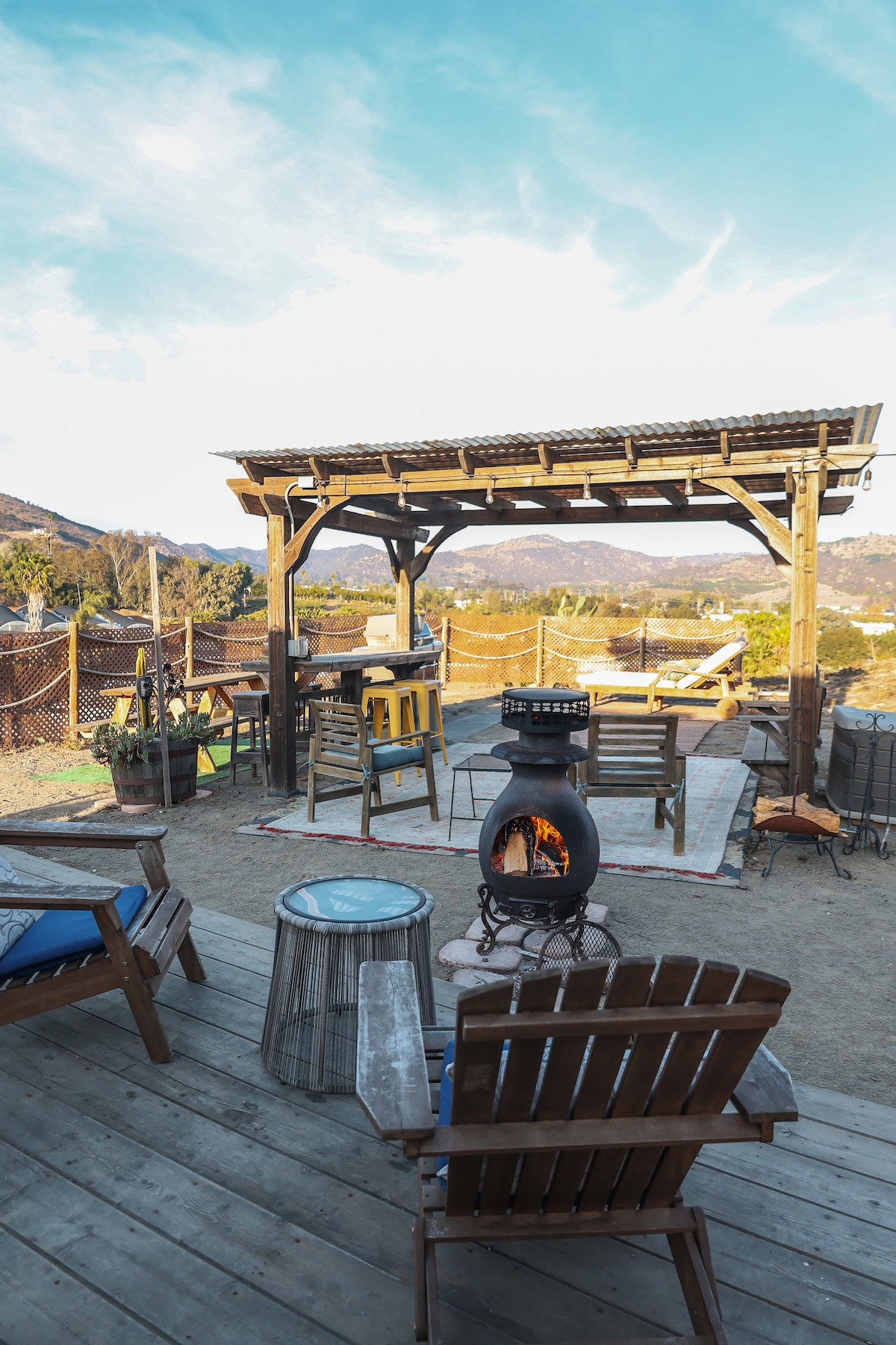 Nestled in a quiet hillside canyon with panoramic city and sunset views—just a short drive outside of downtown San Diego, this glamping retreat offers: ✦Private Hot Soaking Tub under the stars ✦Custom wood-fired sauna ✦Golf chipping tee ✦Fast Wi-Fi ✦AC & Heat ✦Gated, off street parking Cozy up by the fire as the city sparkles below or try your swing at the golf tee. Reconnect & recharge in your own outdoor hot soaking tub, rain shower & wood-fired sauna - the perfect retreat for nature lovers!