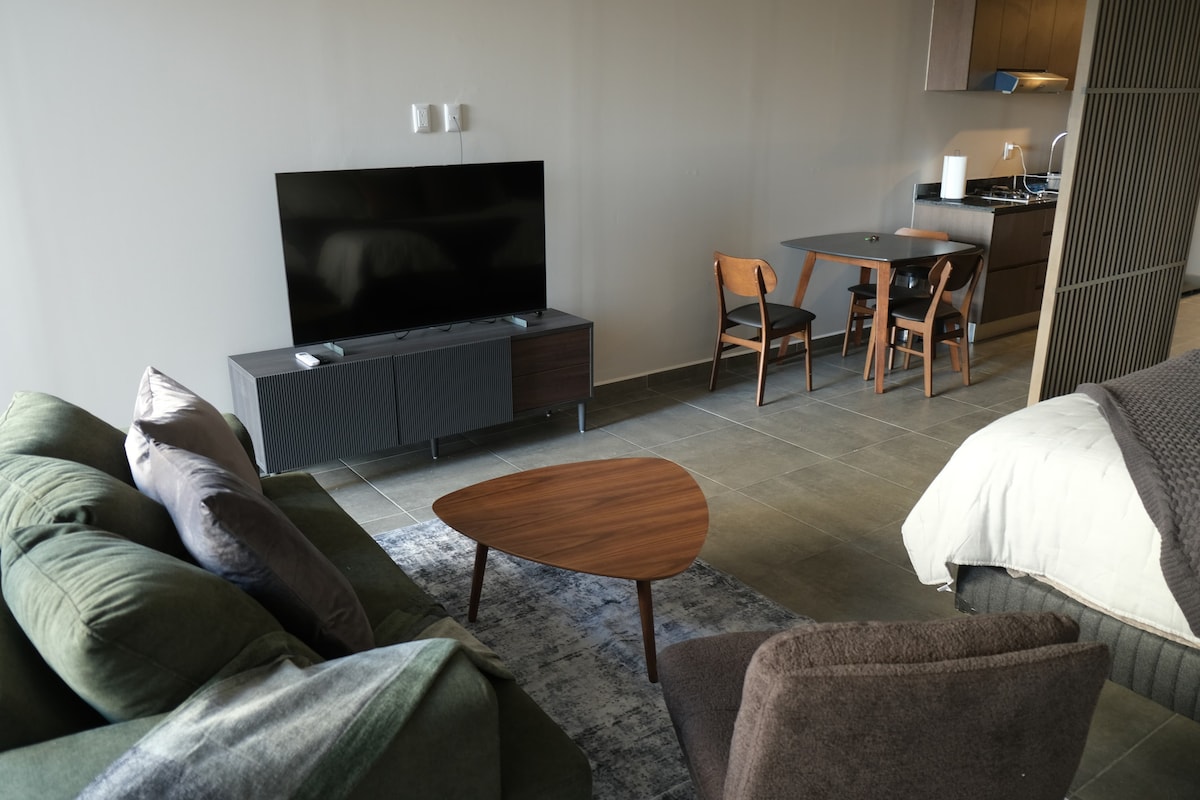 Ven y relájate en este espacio abierto con amplio jacuzzi privado y terraza! Si lo que buscas es relajarte durante tu estadia en León, Silao o Gto, este lugar puede ser ideal para ti. cerca de Pto Interior y del Aeropuerto esta ubicación te da fácil llegada a tu destino gracias a su variedad de accesos. El residencial es de acceso controlado y monitoreo para tu seguridad. **se pide mantener ruidos al mínimo por respeto a los vecinos***