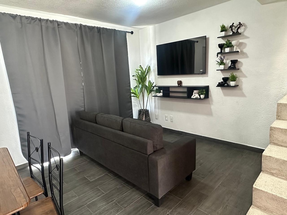 Počutite se kot doma, sprostite se v čistem, urejenem in sodobnem okolju, le 3 minute od letališča, Femexfut, industrijskega parka 2000, dinamičnega središča Pegaso in hitrega izhoda na CDMX. Vsa oprema, ki jo potrebujete za prijetno bivanje. Zelo varen prostor, ki ima nadzorno kabino ob vhodu v predel in še eno v zasebnem prostoru. Ima 2 spalnici s posteljo in raztegljivim kavčem ter garsonjero, ki je idealna za delo ali udeležbo na sestankih, televizorje z vrhunskim videom in pralnico.