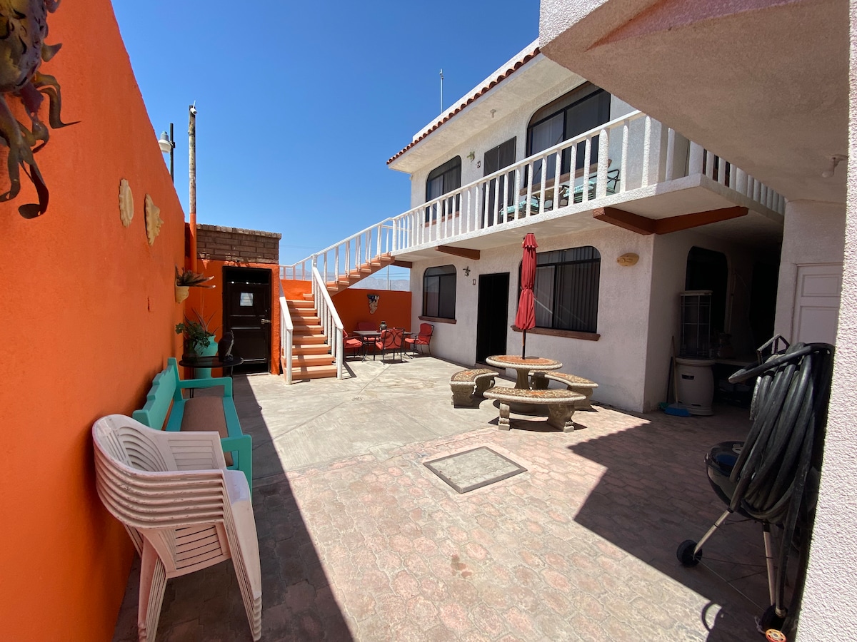 UŽIVAJTE na lepših plažah v soseski Playas de San Felipe. 1. SPREHODITE SE DO PLAŽ IZ našega STANOVANJA 2 BR IN SE do MESTA PELJITE le 1,5 MILJE. 2. UDOBNO, ZASEBNO IN VARNO. Čisto, mirno, lepo obloženo 1100 kvadratnih metrov za 6 oseb z dodatnimi otroškimi posteljicami. Balkon, terasa, pogled na morje 3. PRIROČNO. Kuhinja s celovitimi storitvami, WI-FI, kabelska TV, Air-Con, vroče prhe 4. DODANA VREDNOST. Pomoč na kraju samem, varno in brezplačno parkiranje, brezplačen potovalni vodnik, brez takse letovišča, enkratni strošek čiščenja, hišni ljubljenčki so dobrodošli - dodajte 15 $/hišnega ljubljenčka, plačajte na kraju samem.