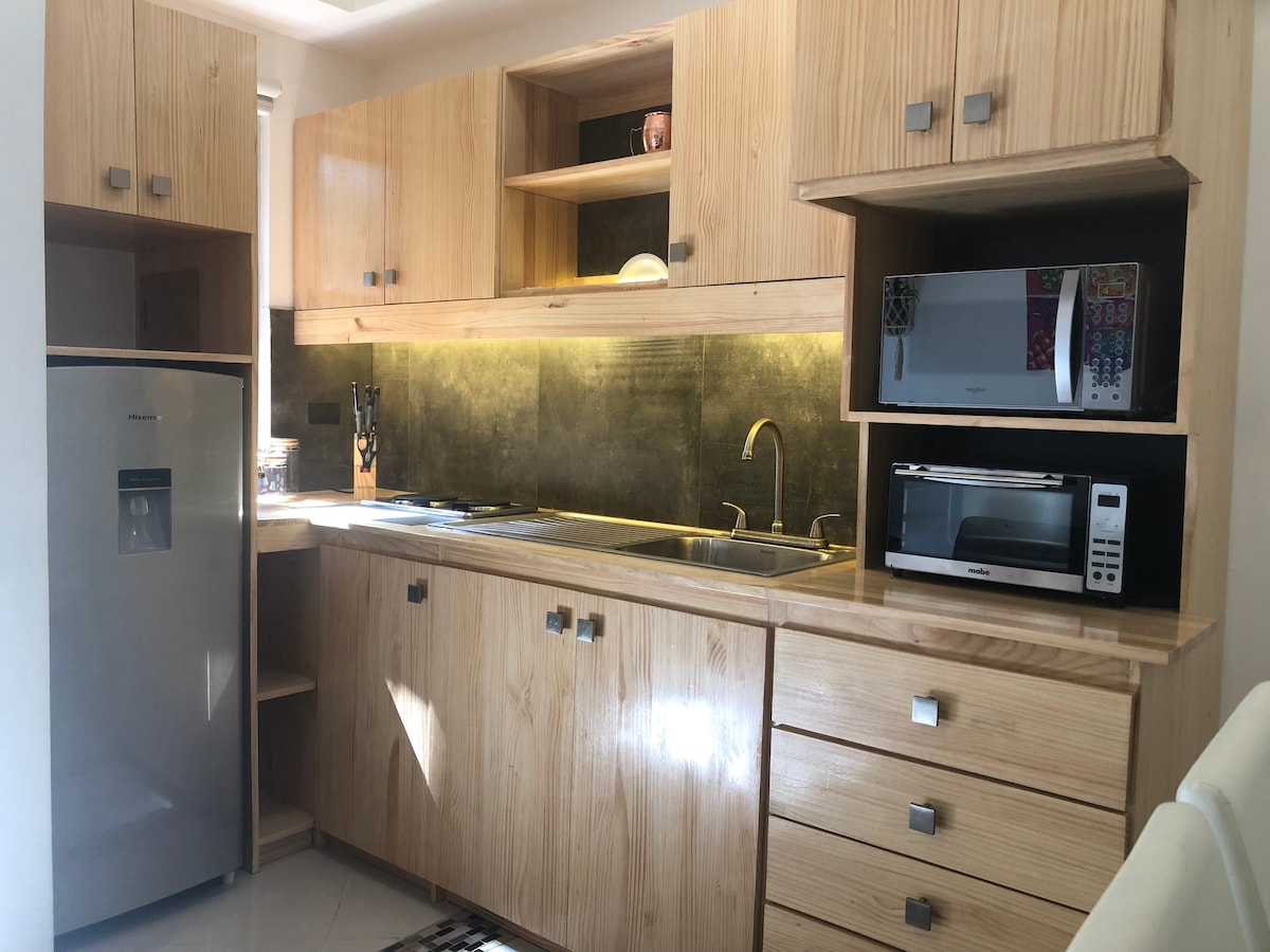 Moje stanovanje se nahaja v središču mesta v bližini metropolitanskega parka La Sabana in ponuja popolno mešanico sprostitve in funkcionalnosti. Prostor je zasnovan za udobje in je idealen za virtualno delo s popolnoma opremljeno kuhinjo za energijske zajtrke ali intimne večerje. Uživajte v mirnem spancu, popolni zasebnosti in priročnosti kopalnice z WC-jem. Edinstveno sodobno vzdušje izboljša vaše bivanje. Poleg tega stanovanje nudi brezplačno parkiranje v stavbi za dodatno udobje.